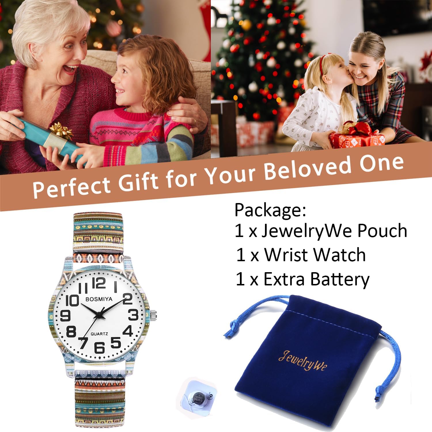 Be the first to review “JewelryWe Women’s Stretch Band Watches: Easy Reader Analog Quartz Elastic Watch Casual Floral Expansion Band Wristwatch for Christmas”