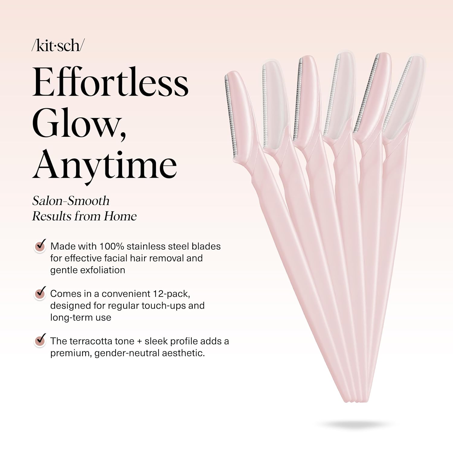 Kitsch Dermaplane Razor for Women Face – Face Razors for Women & Men, Eyebrow Trimmer & Face Shaver – Exfoliating Facial Razor & Skin Care Tool for Smoother Skin – Blush, 6 pcs