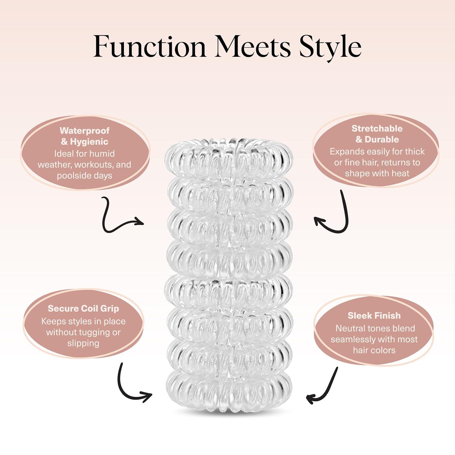 Kitsch Spiral Hair Ties for Women – Coil Hair Ties No Damage, No Crease, Secure Grip All Day Hair Coils, Stretchable and Waterproof | Ideal Gifts for Women – 8pcs (Clear/Transparent)
