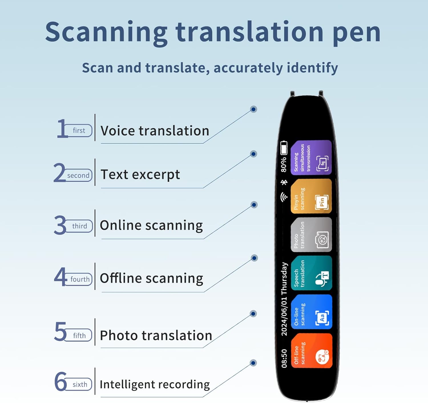 【Text to Speech Translation】Supports scanning and translating text in 144 online languages and 10 offline languages, converting translated text into real-time voice output. This reading pen for dyslexia is ideal for improving listening and speaking skills, and is especially useful for individuals with reading difficulties or language learners.