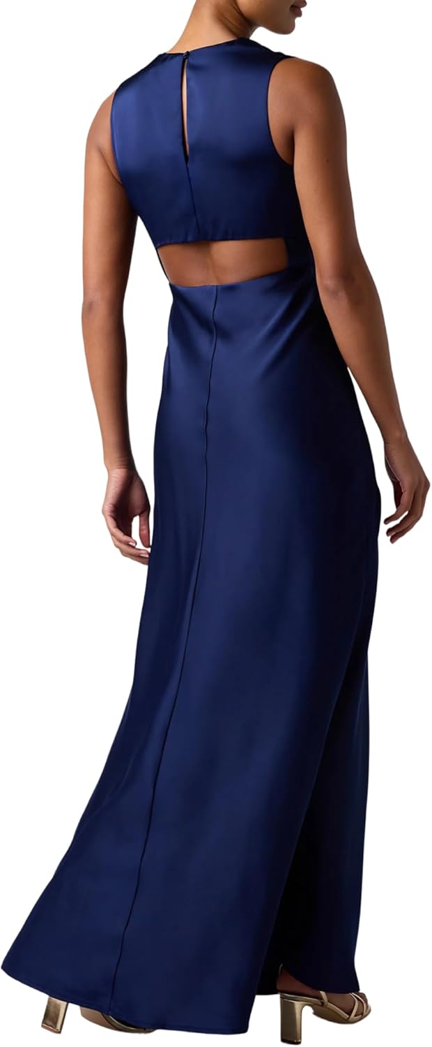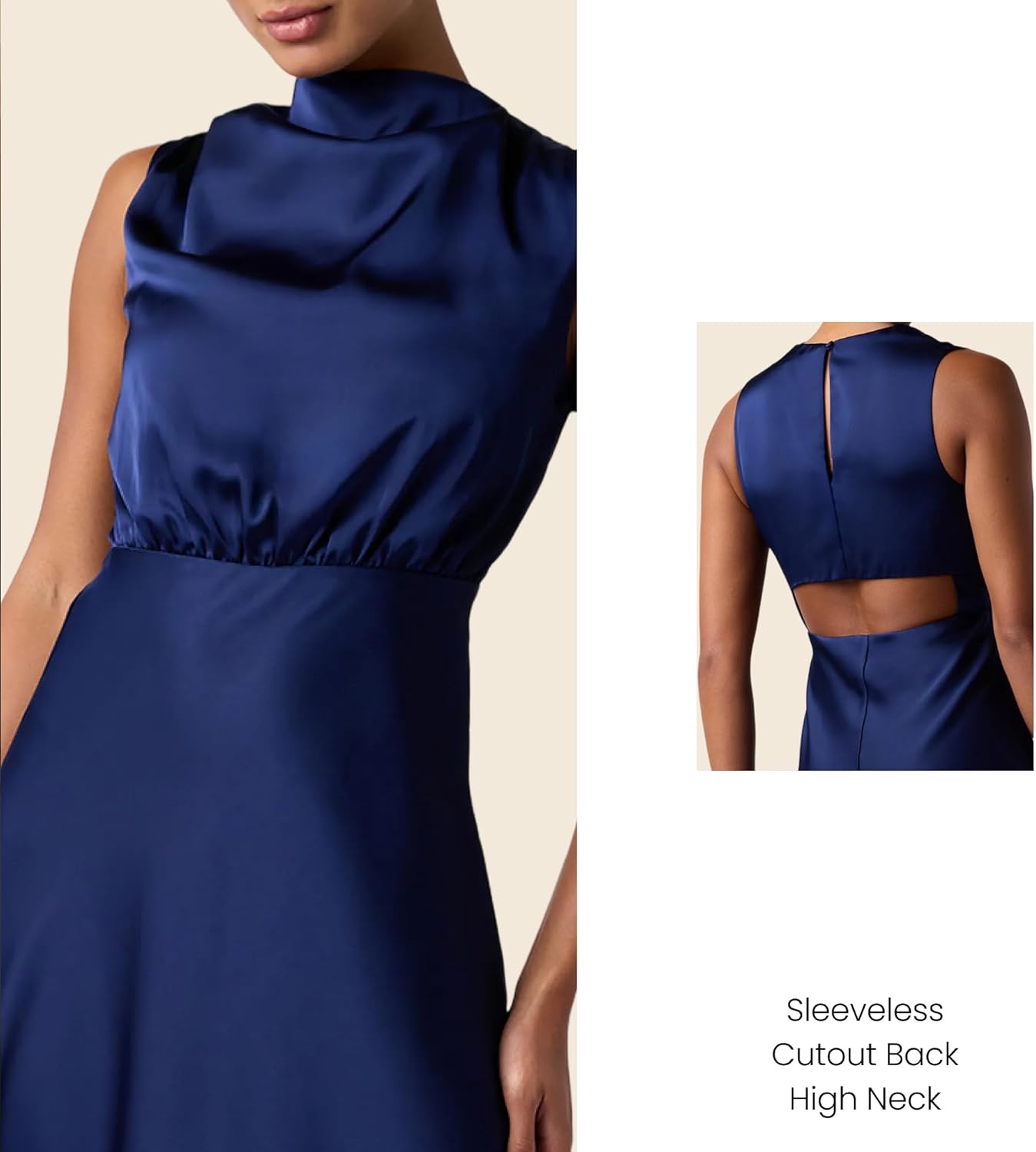 Lulus Ada Satin Maxi Dress Women’s Sleeveless Mock Neck Cocktail Dress with A-Line Skirt and Back Cutout, Size, Color
