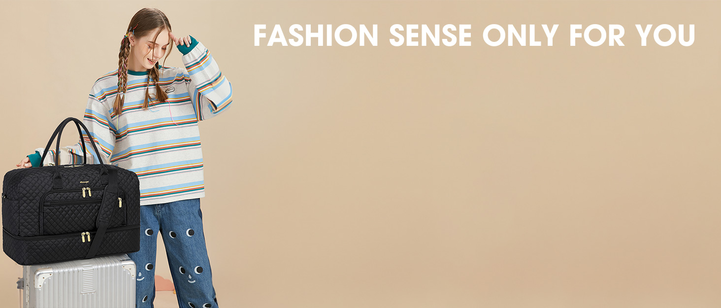 Humanized Design Carry on Bag: The weekender bag comes with a removeable adjustable padded shoulder strap for comfort, as well as two attached handles that are also rounded and very comfortable on the hand. The handles thick and of strong material and the seams are reinforced. Metal zippers will not gather rust easily, can be used longer. The traveling bag have 5 metal feet, to keep the fabric from wearing