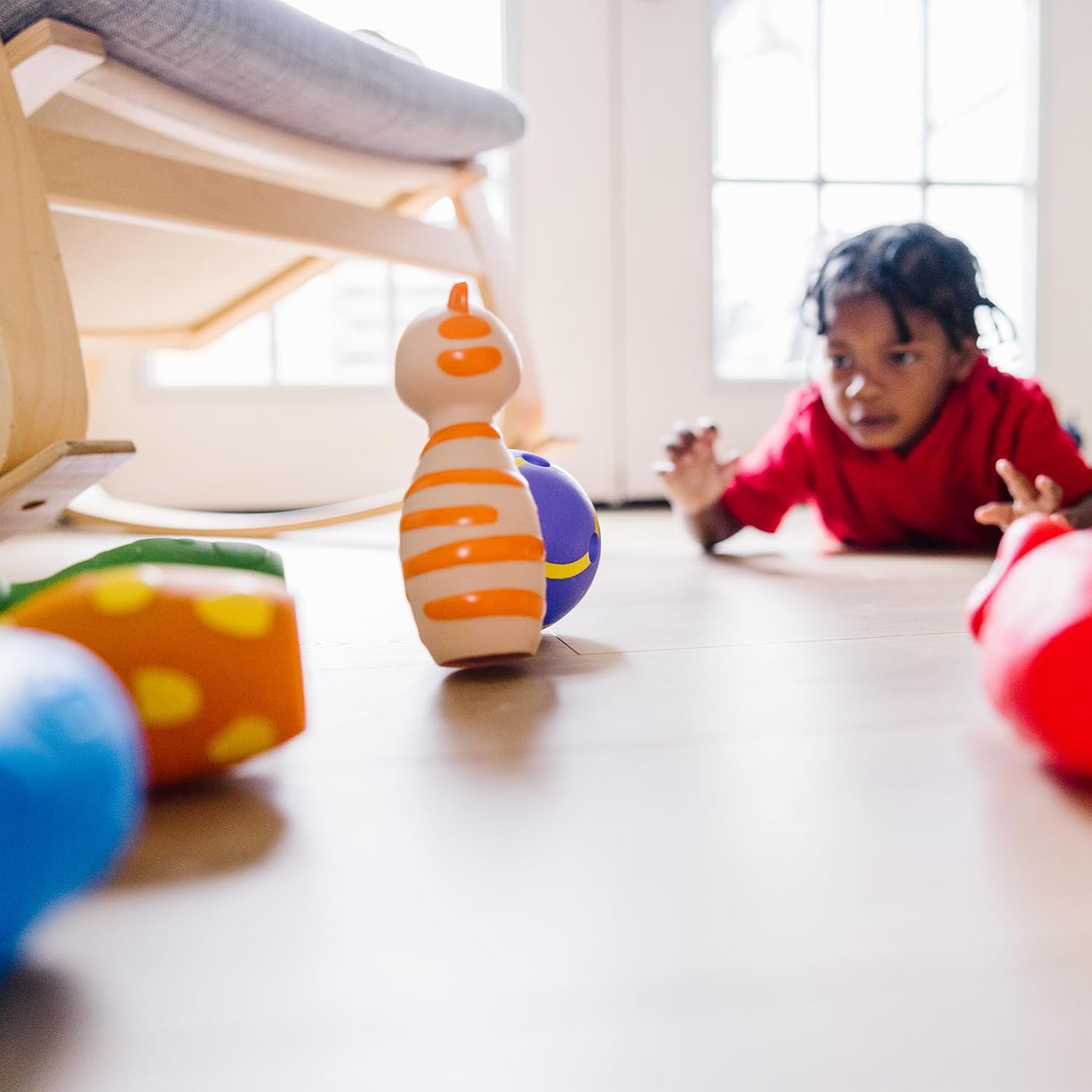 Gift for Ages 2 to 4: Ideal choice for birthday gifts or everyday play. Travel-friendly bowling game and soft balls for kids are perfectly sized for toddlers at home or on the go; solo or group play