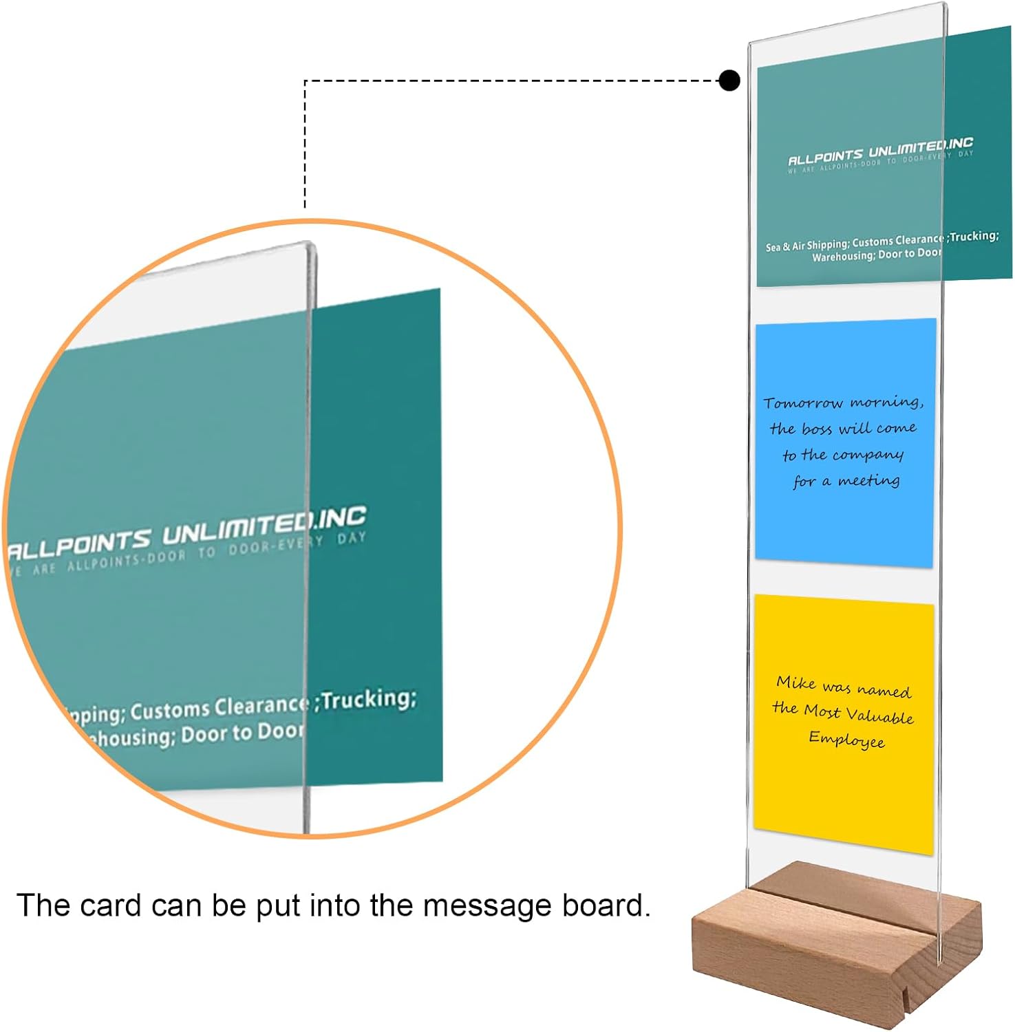 Elegant Acrylic & Wood Base Combo for a Premium Look:Crafted with a clear acrylic panel and a natural wood base, this memo board adds a stylish, modern touch to your workspace. Designed to complement any computer setup—whether at home or in the office.