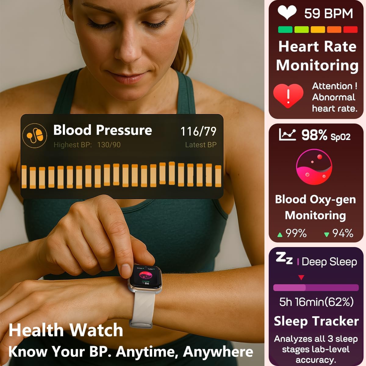 Track blood pressure changes during work meetings or yoga sessions. Get alerts for abnormal trends (not medical diagnosis). Stay proactive!