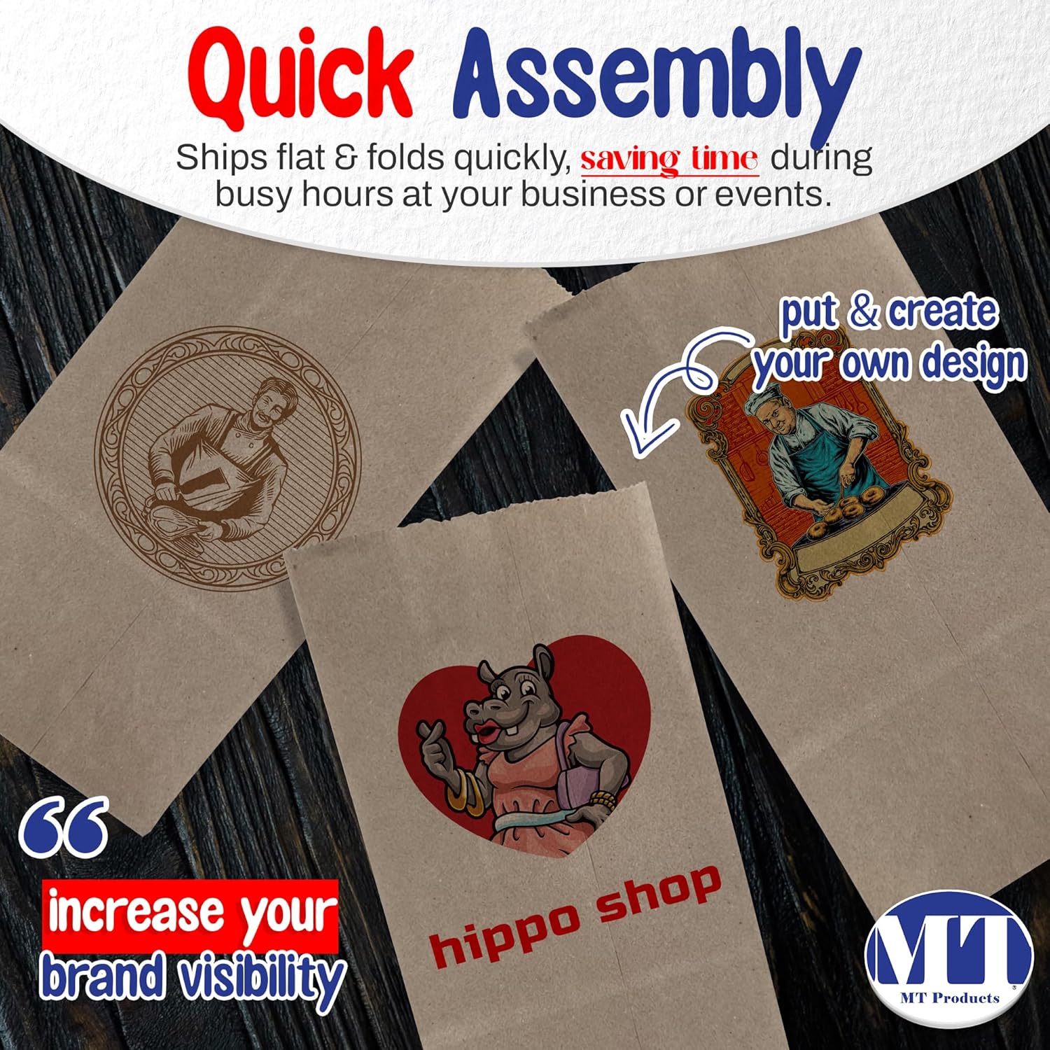 MT Products Custom Printed Brown Paper Bags 2lb. – Personalized Disposable Paper Snack Bags – Made in USA