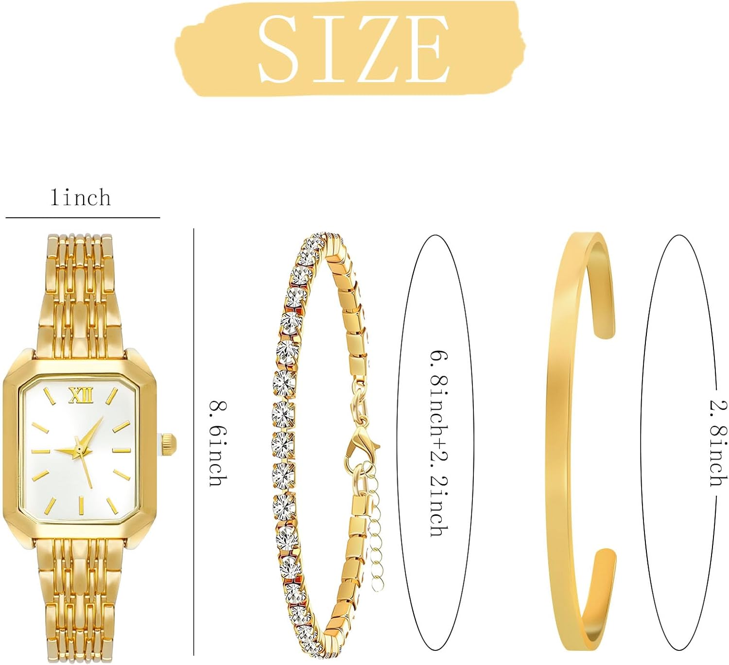 Be the first to review “NEWITIN 3 Pieces Women Gold Watch Bracelets Set Fashion Costume Jewelry Stainless Steel Gold Plated Square Wristwatch Diamond Bangle Bracelet Watch Jewelry Set for Women”