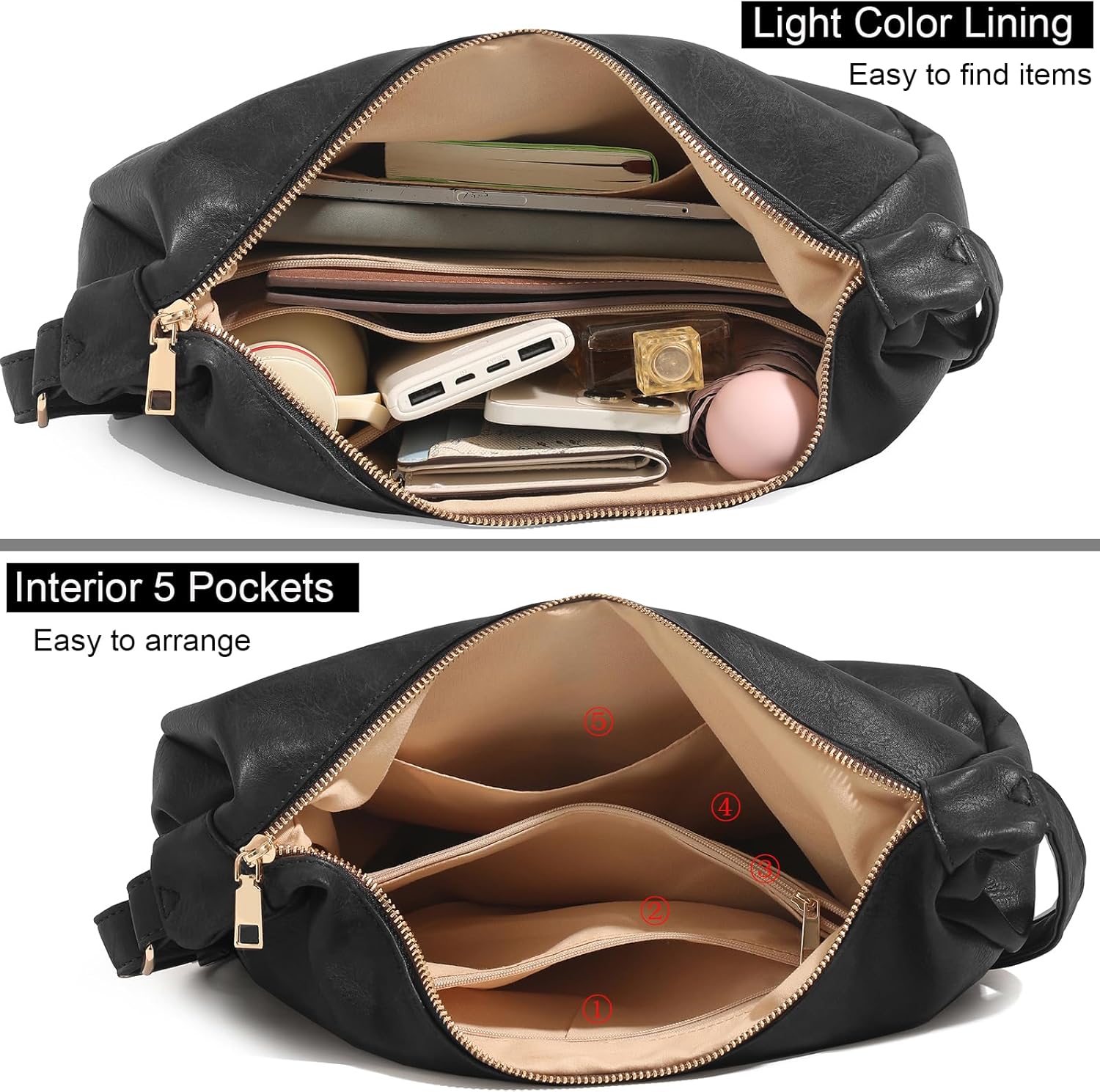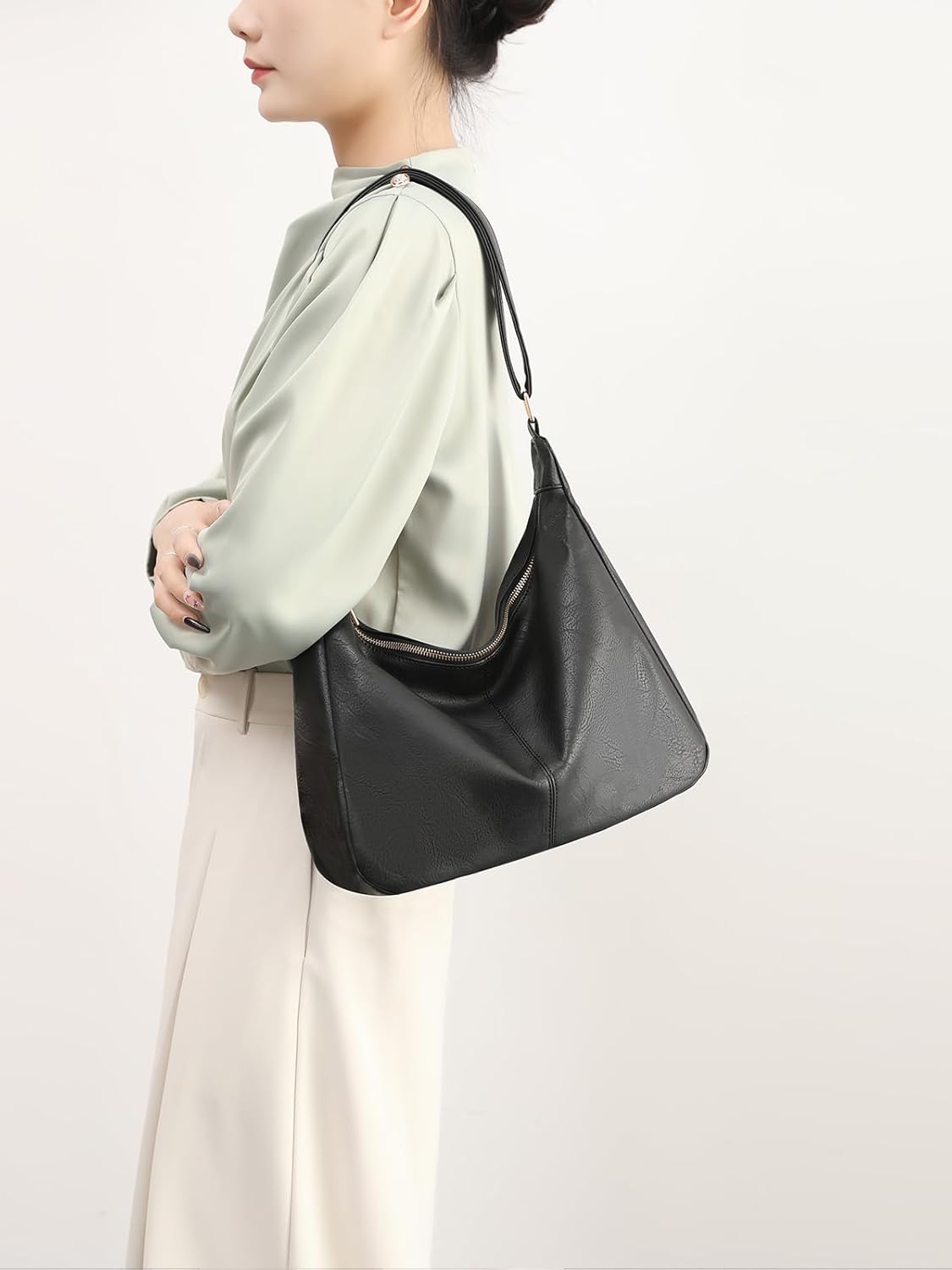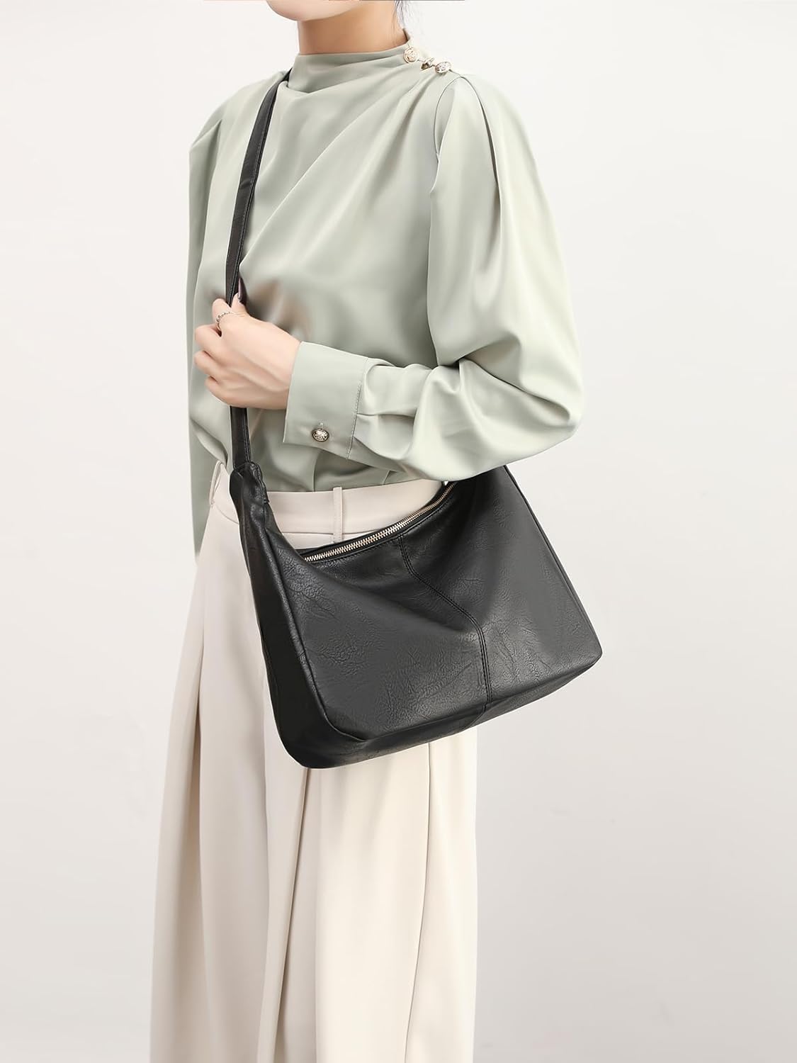 NIUEIMEE ZHOU Hobo Bags for Women Foldable Vegan Leather Shoulder Handbag Slouchy Tote Crossbody Purses
