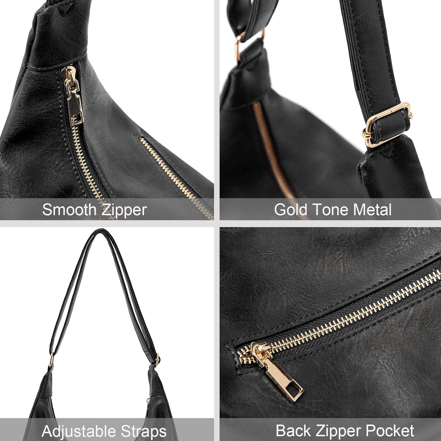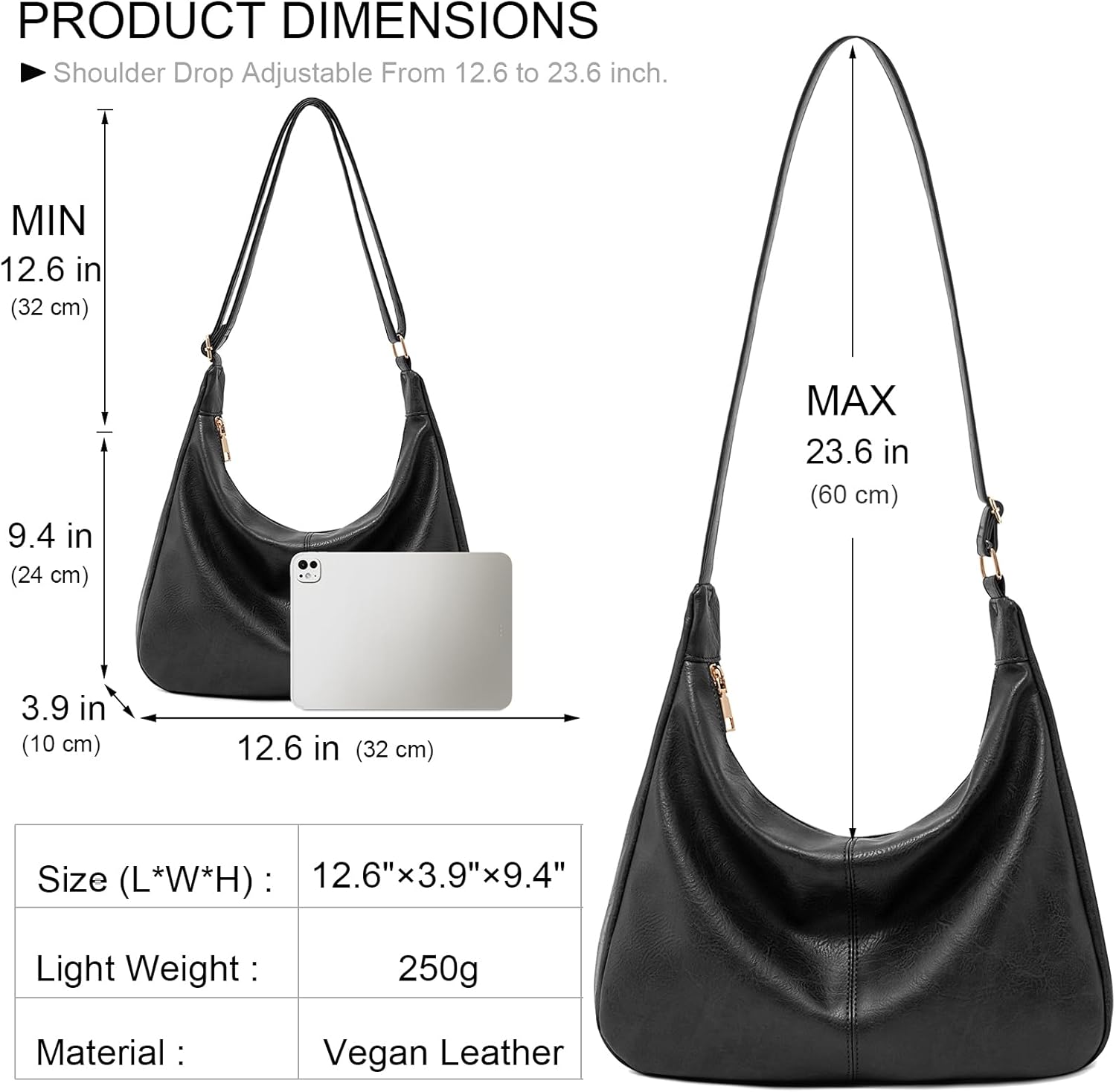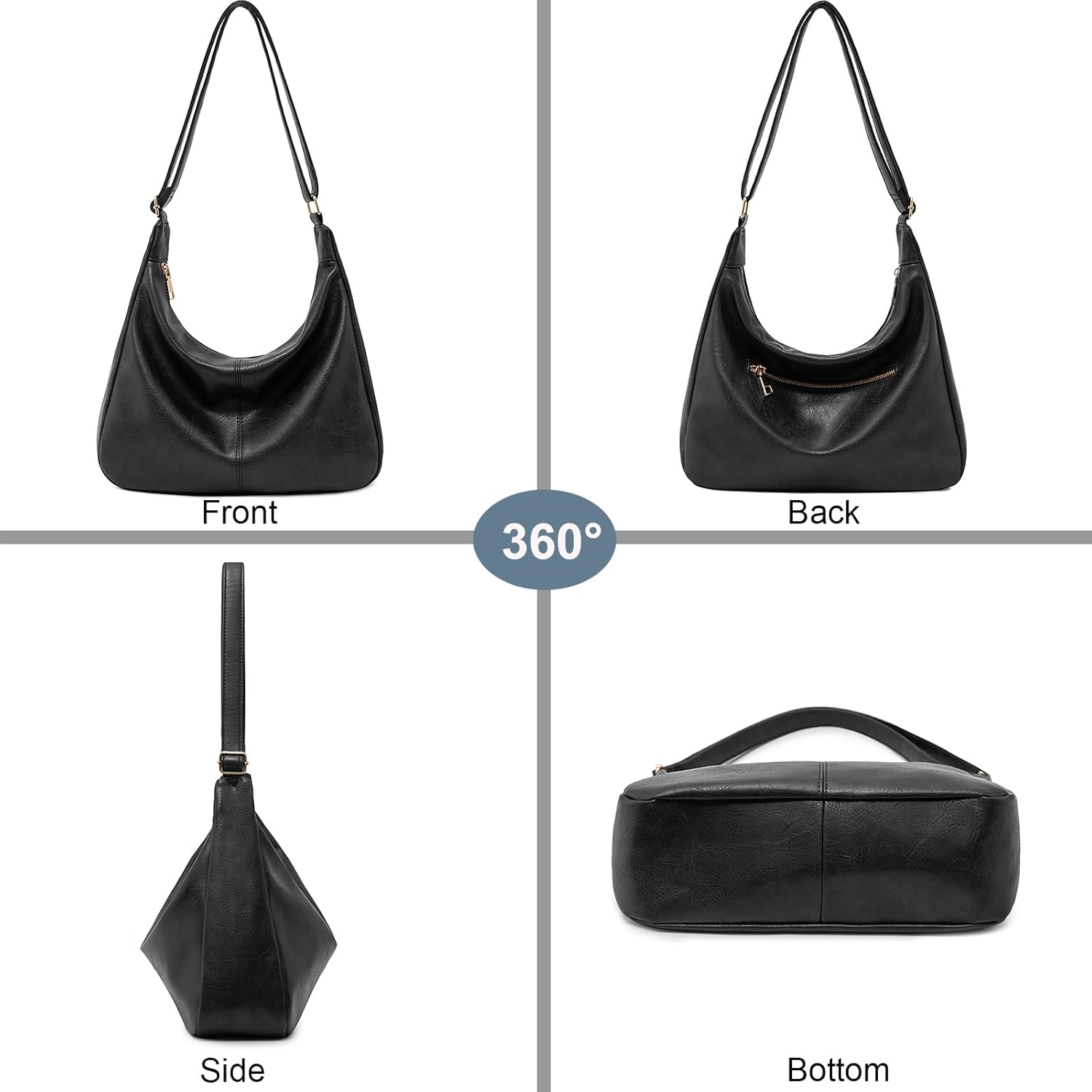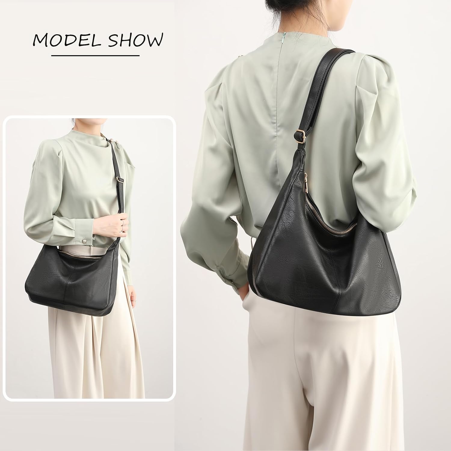 NIUEIMEE ZHOU Hobo Bags for Women Foldable Vegan Leather Shoulder Handbag Slouchy Tote Crossbody Purses