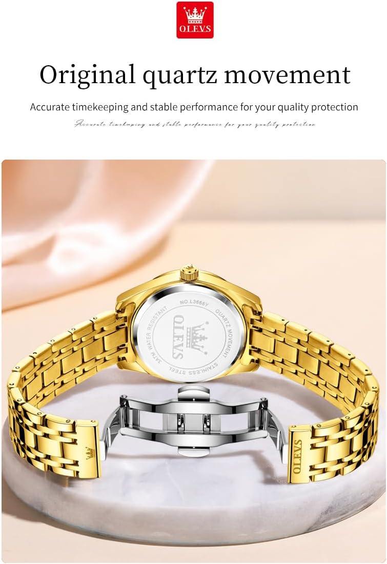 OLEVS Womens Watches Classic Dress Quartz Female Wristwatch Ladies Stainless Steel Waterproof Luminous Date Easy Read Watch for Lady