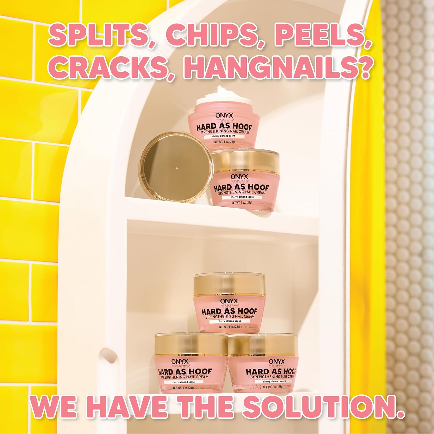 Onyx Professional Hard as Hoof Nail Strengthening Cream, Cherry Almond Scent – Made in USA, Nail Growth & Conditioning Cuticle Cream Stops Splits, Chips, Cracks & Strengthens Nails, 1 oz