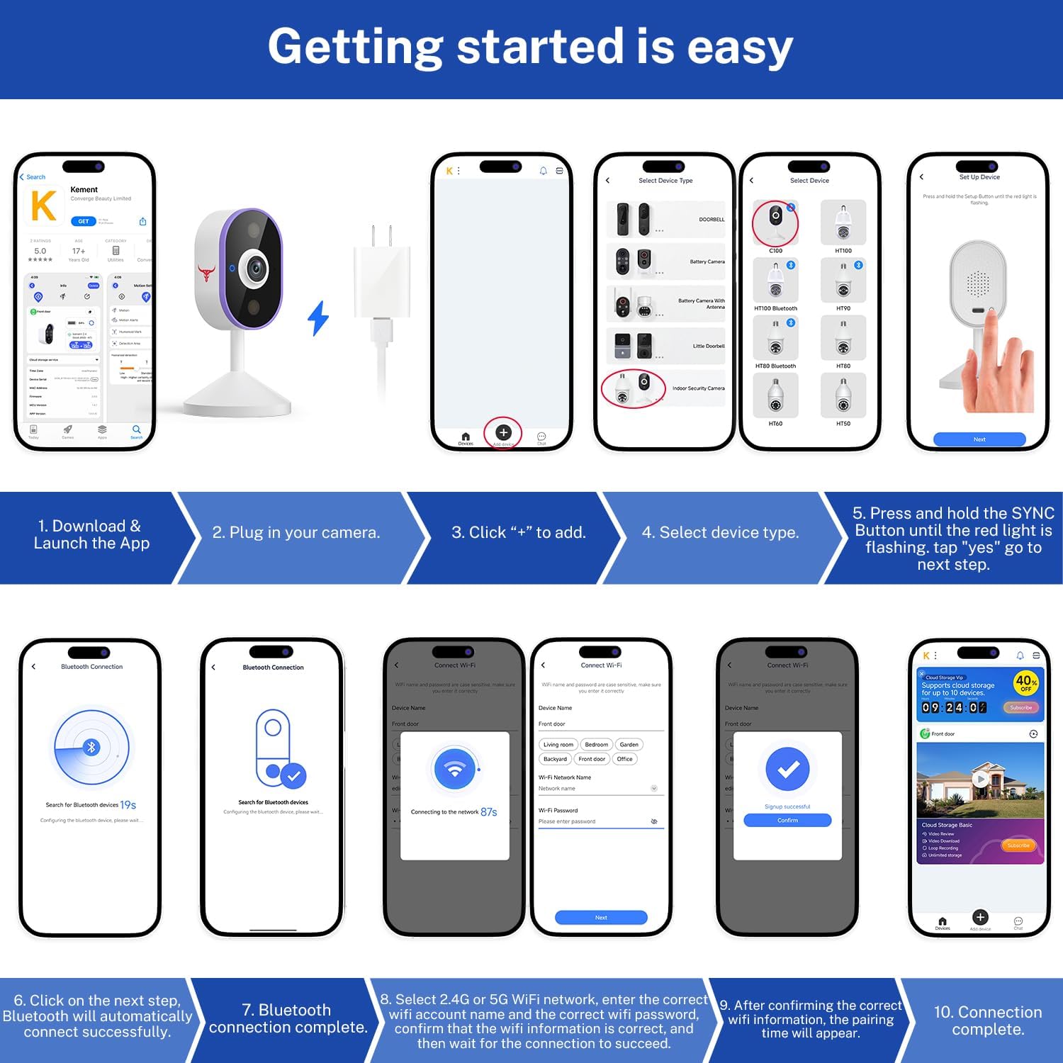 Mobile App Control: View and manage camera via smartphone app (iOS/Android).
