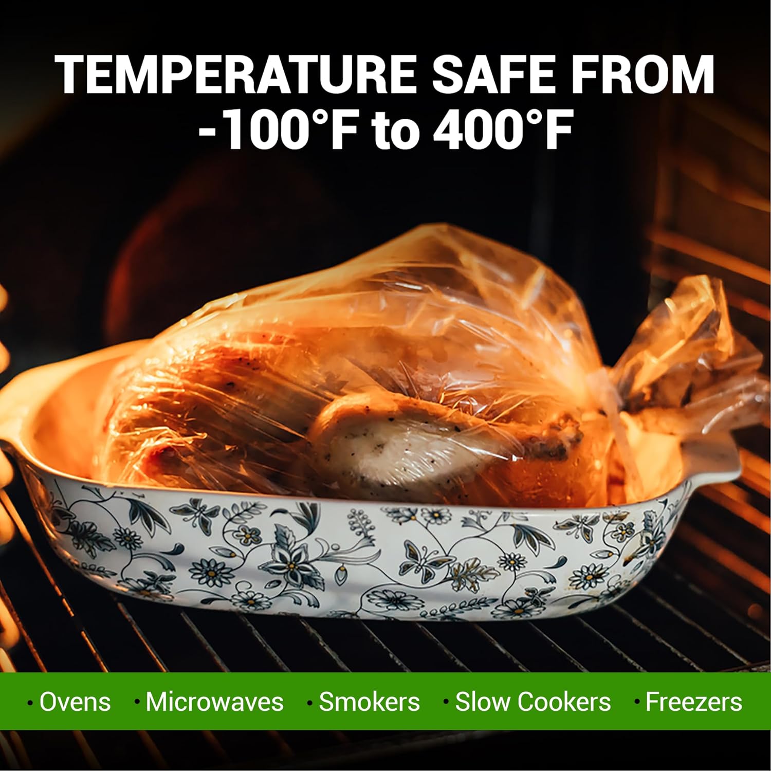 High Heat and Cold Resistance: Oven bags withstand temperatures from -100°F to 400°F and are safe for use in ovens, smokers, and microwaves.