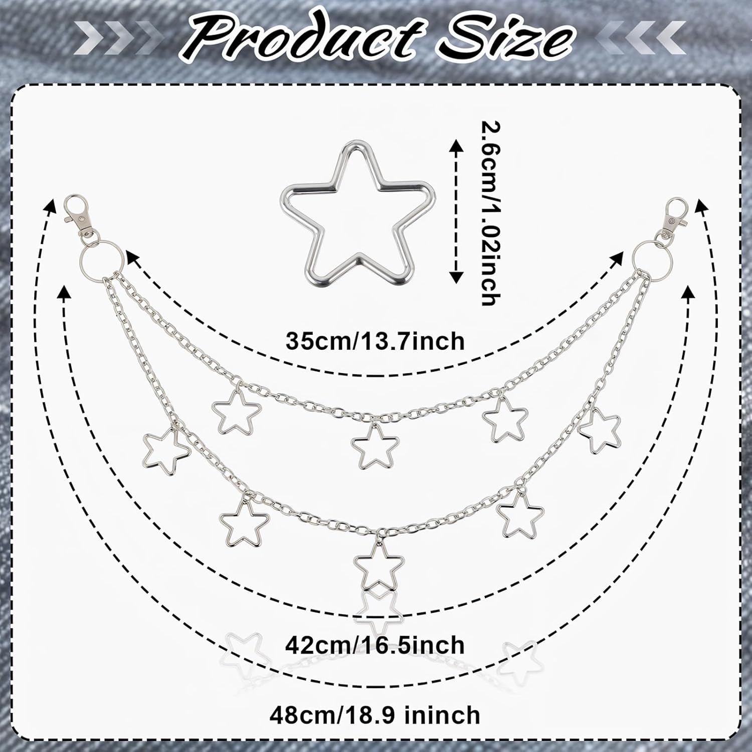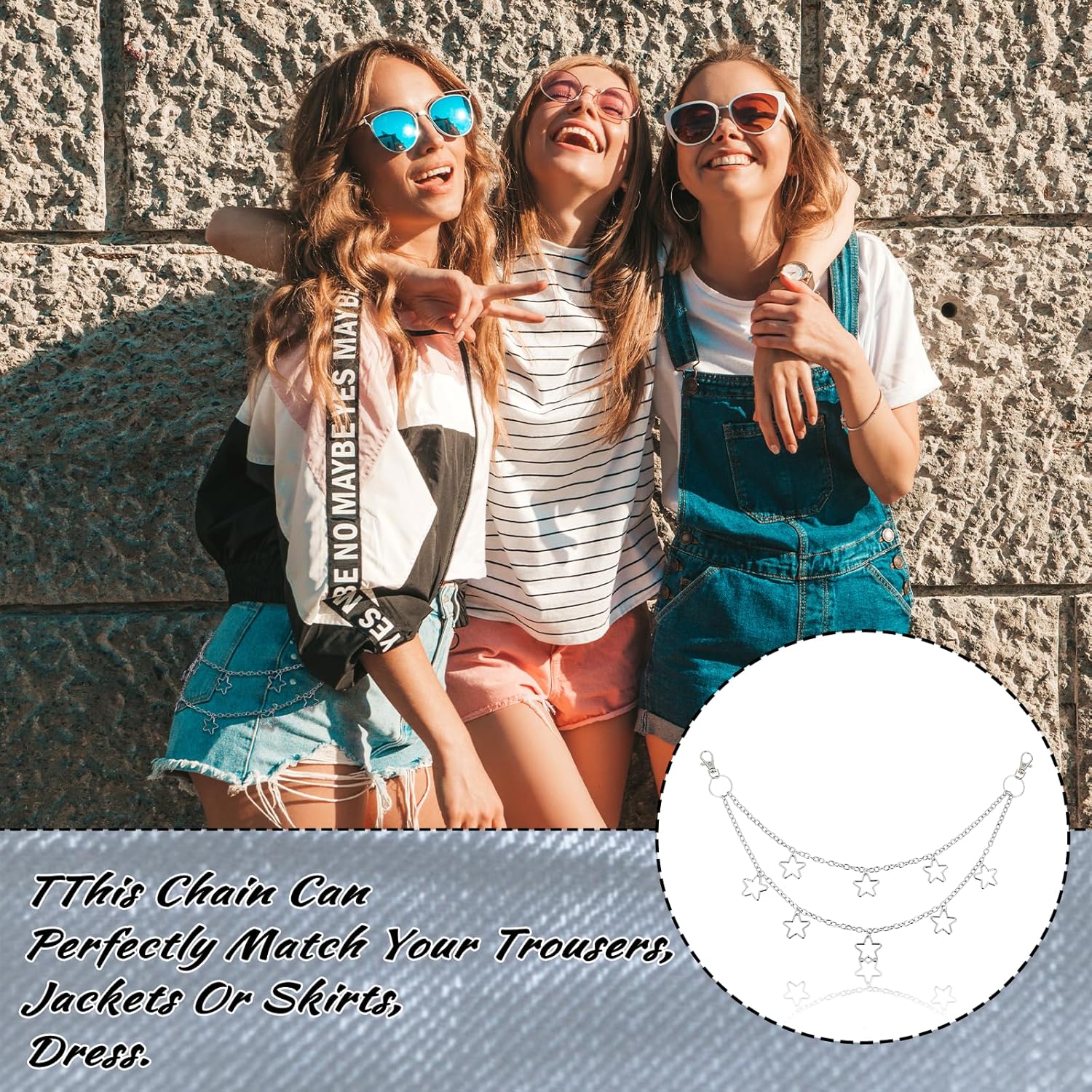 Pant Chains for Women, Chains for Jeans, Retro Punk Chains for Pants,Layered Star Chain for Women Men Clothing Accessories, Metal Star Belt Chain, Rock Wallet Chain