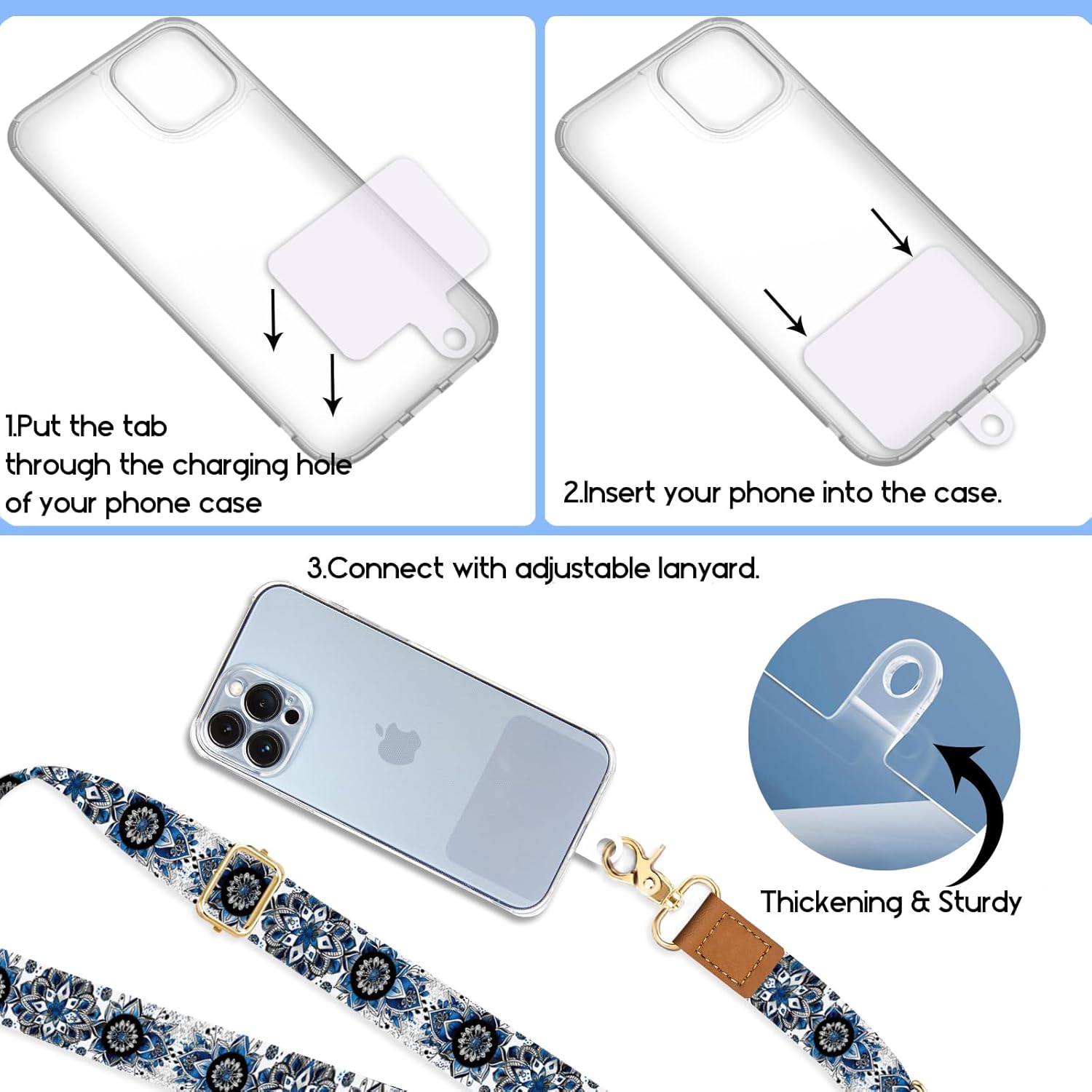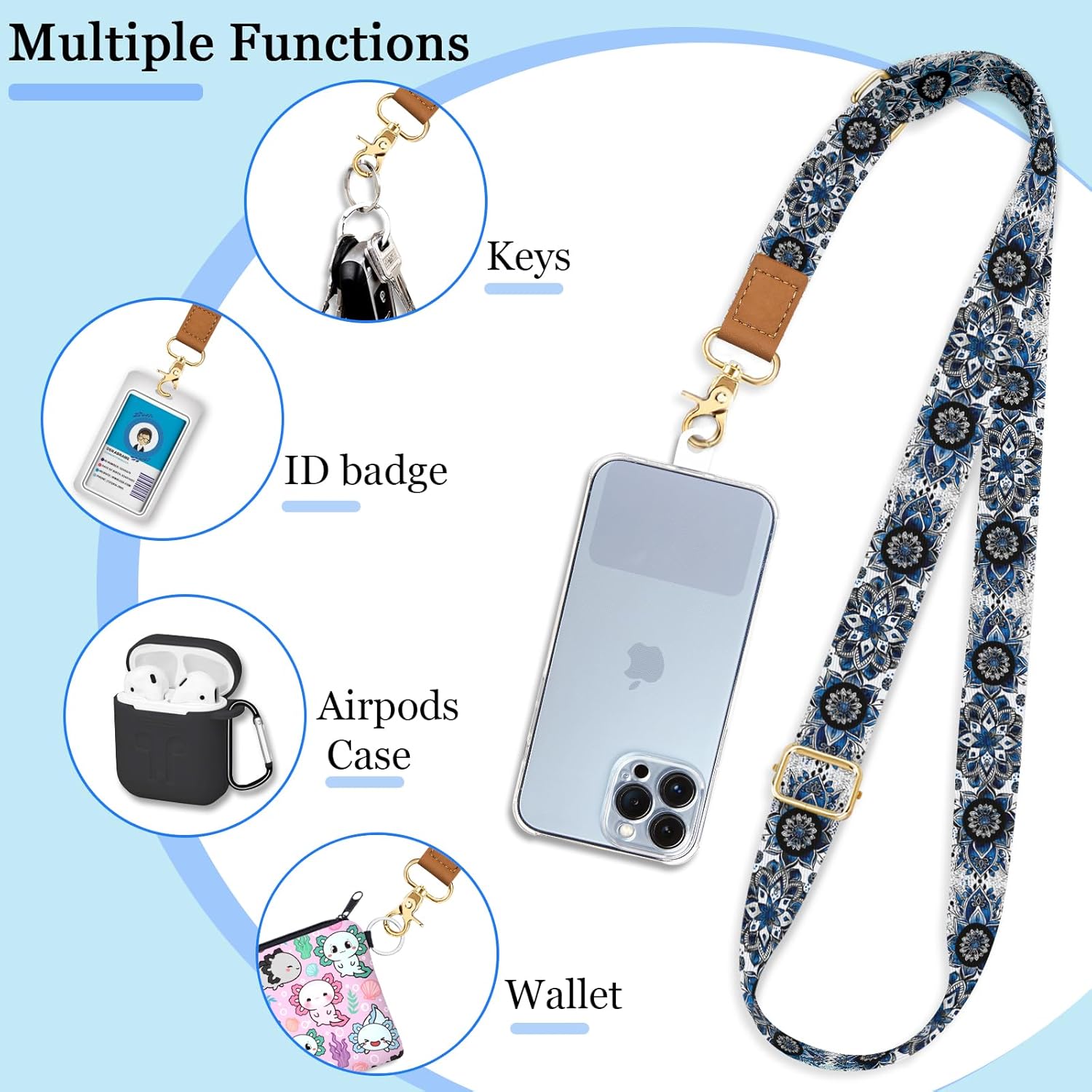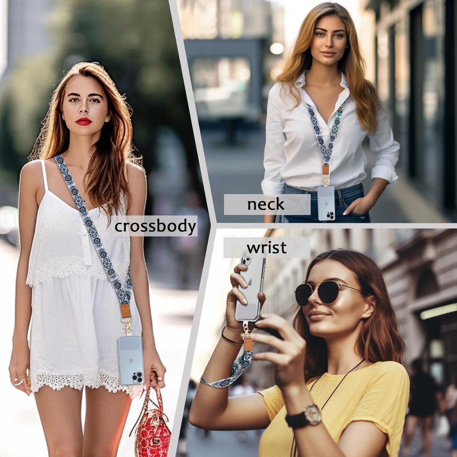 Phone strap crossbody designed to be versatile, allowing you to hang your phone around your neck, wrist, or diagonally crossbody. In addition to cell phones, your keys, cards, wallets, headphones, dolls and cameras are equally applicable