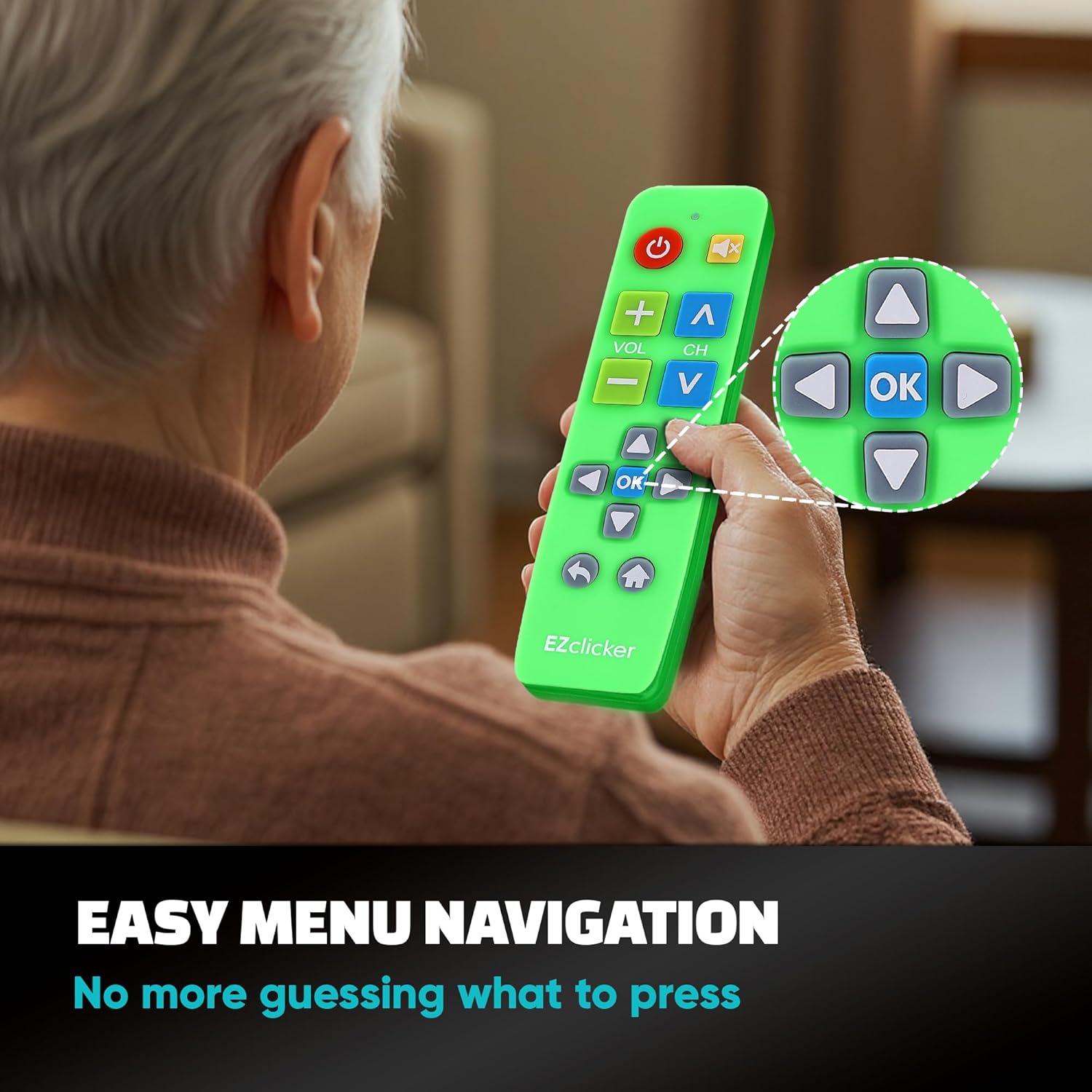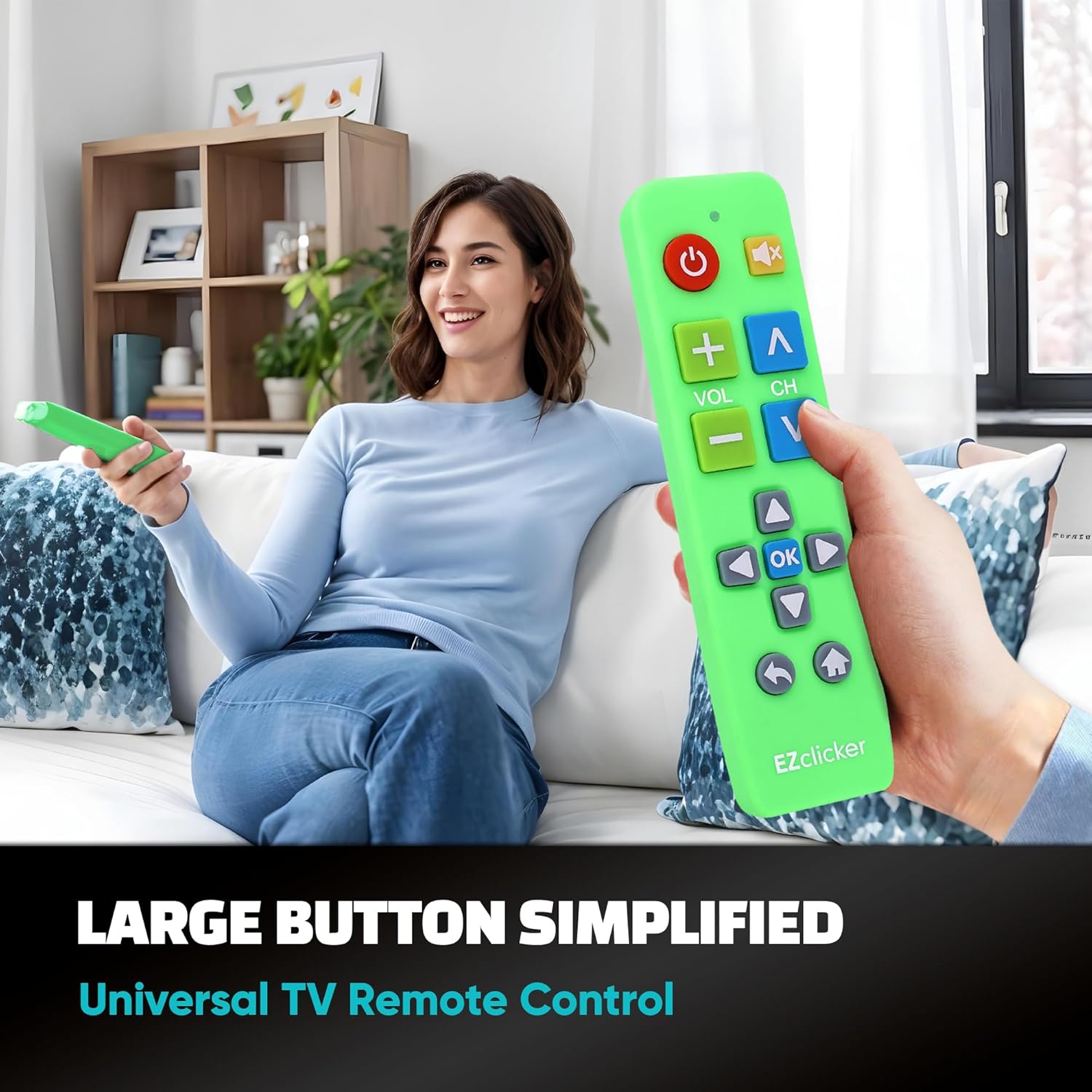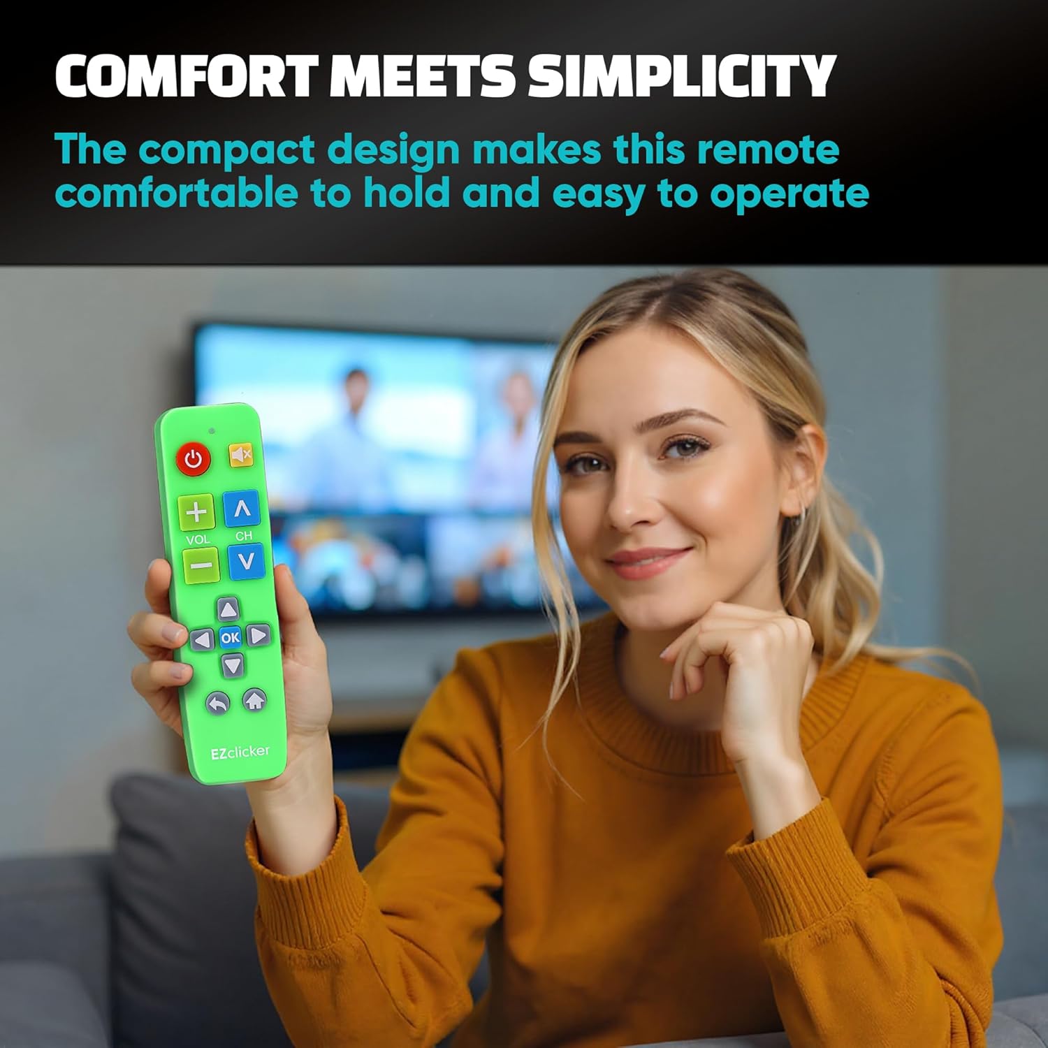 Easy Big Button Design: The remote includes specialized features like an extra-large enter button, big button universal controls, and tactile feedback, catering specifically to seniors and those with limited dexterity or vision. It aims to provide a more comfortable and accessible user experience.