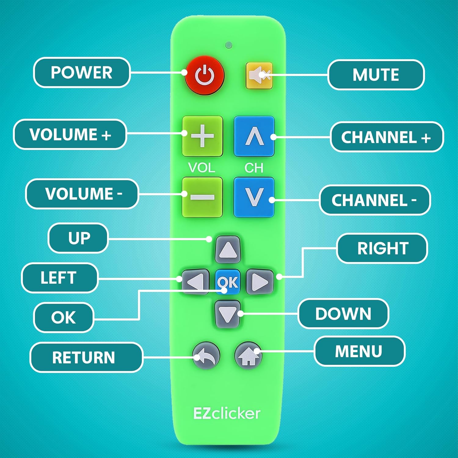 Plus Big Button Universal TV Remote (Green) Simple Easy to Use, Works with Major TV Brands (2xAAA Batteries Not Included)