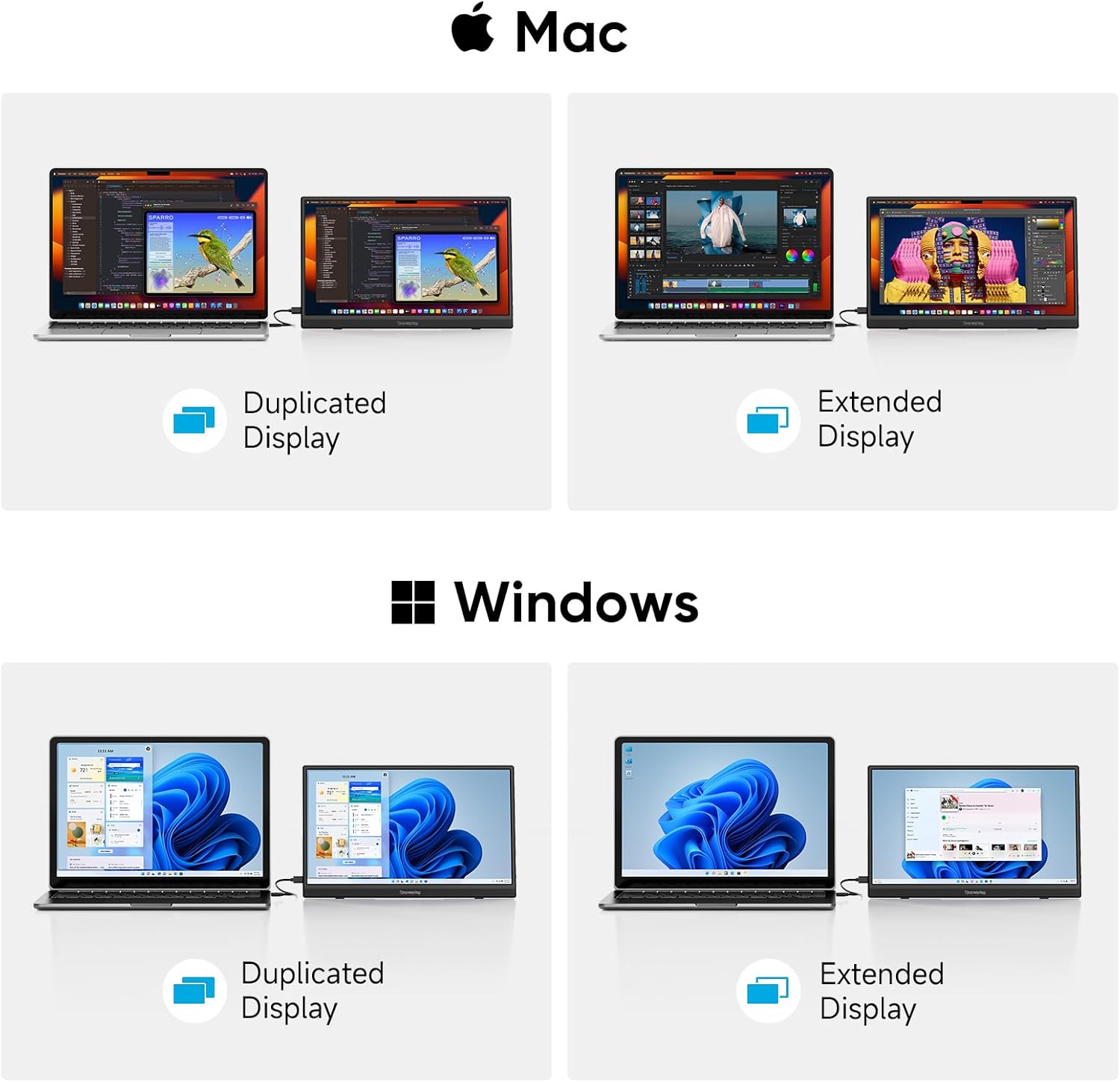 【Wide Compatibility】The Dopesplay laptop screen extender works with various devices, including Windows laptops, Macs, Chromebooks, PS4/5, and Xbox. It supports Windows, Android, and macOS, including Macs with M1, M2, and M3 chips. Note: When connecting through the mini HDMI port, the included adapter is necessary to power the monitor.
