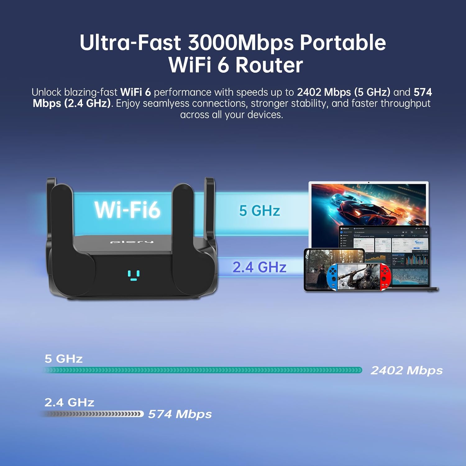 AX3000 Dual-Band WiFi 6 Travel Router – Delivers ultra-fast wireless speed (2402 Mbps on 5 GHz, 574 Mbps on 2.4 GHz). OFDMA and MU-MIMO technologies reduce latency and buffering, for uninterrupted video streaming, downloading, video conferences and online gaming all at the same time