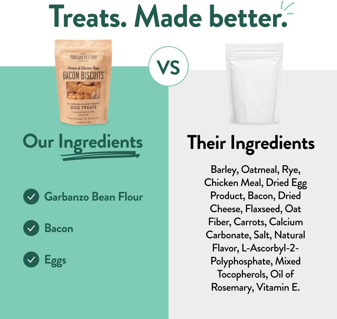Portland Pet Food Company Bacon Dog Treats Healthy Biscuits for Large Medium & Small Dogs – Grain-Free, Human-Grade, All Natural Dog Cookies, Snacks & Training Treats – Made in The USA – 5 oz