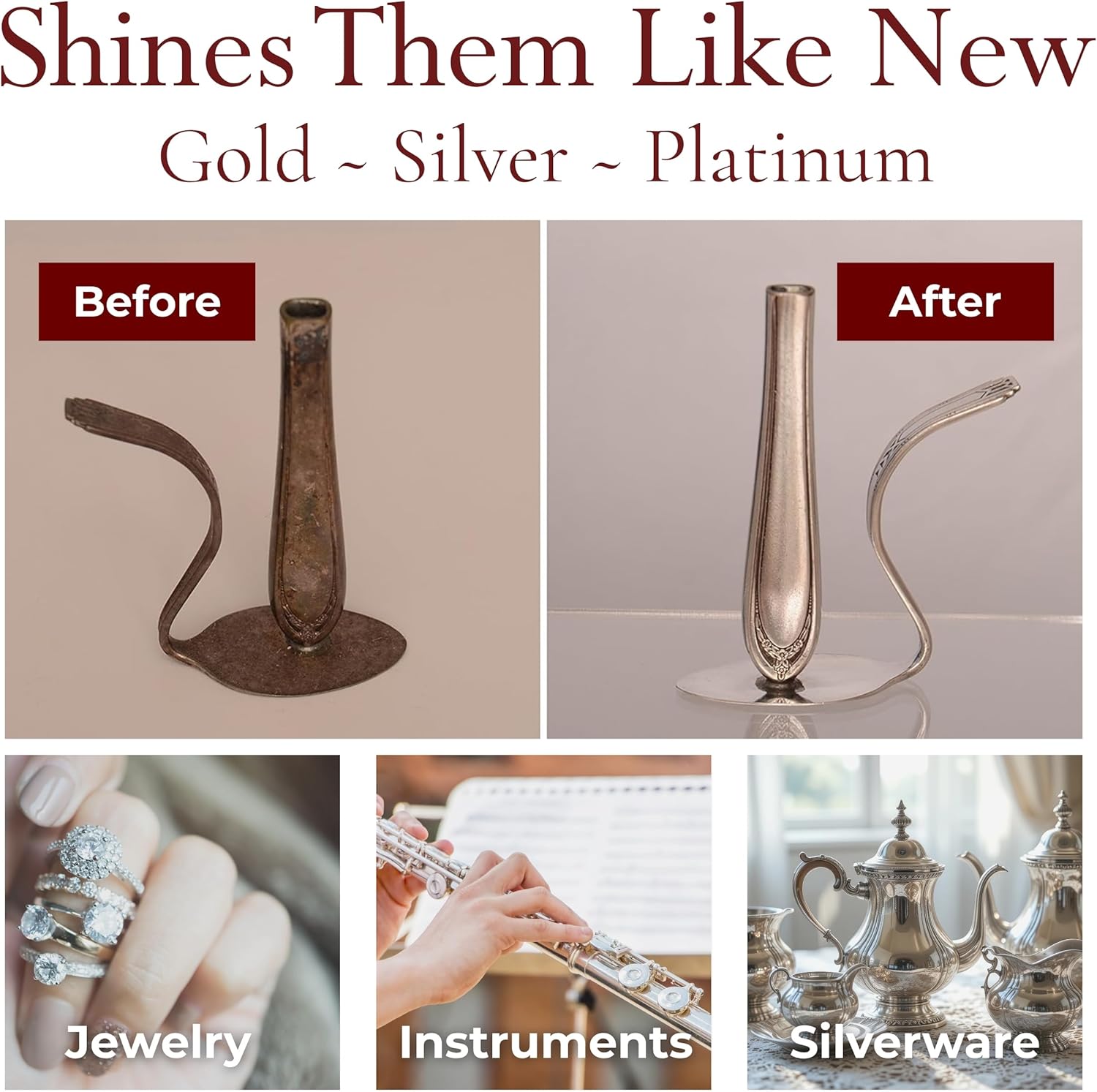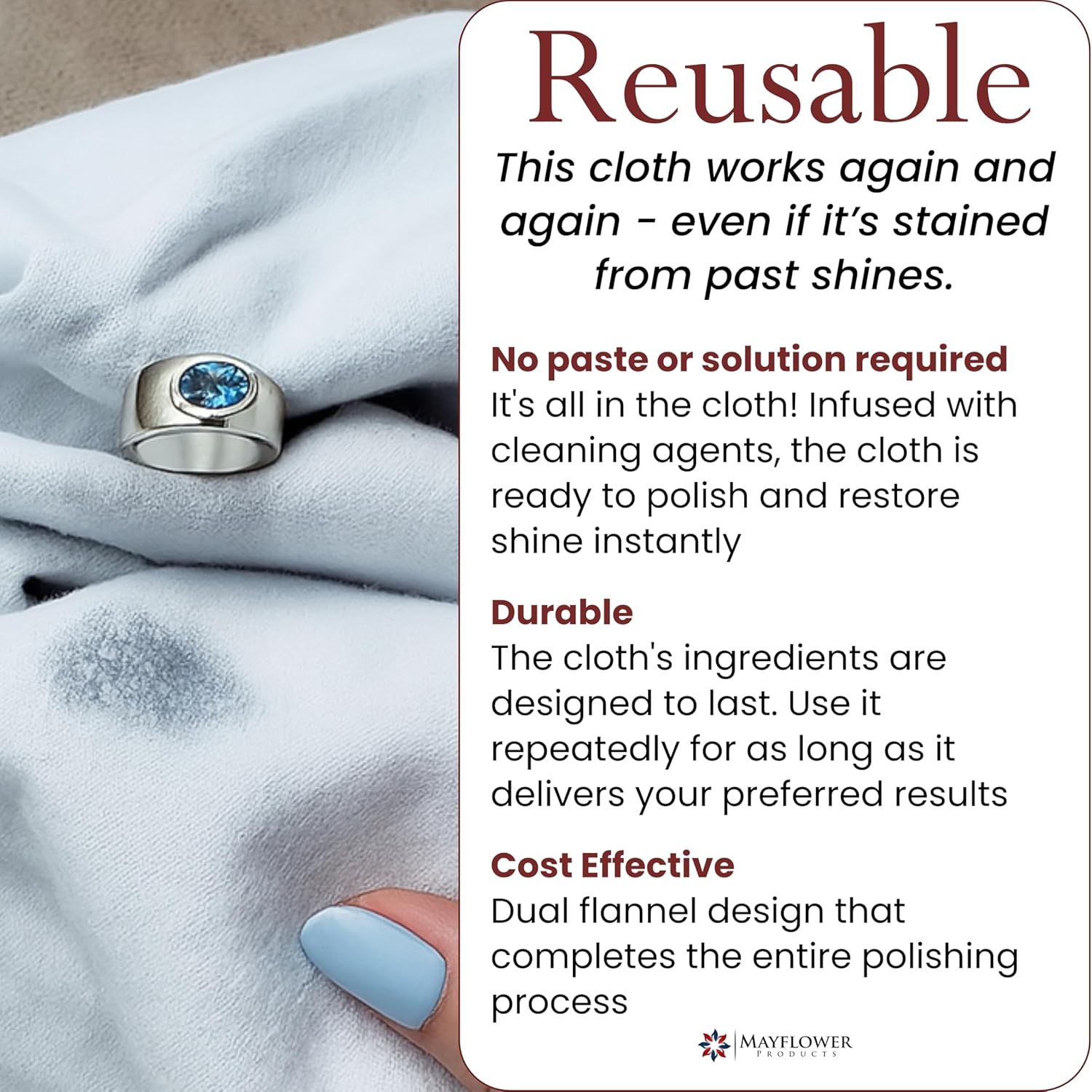 TWO-STEP SYSTEM: Our proprietary formula is dry-impregnated in the white flannel, effectively removing dirt and grease. Both sides of the white flannel contain active ingredients—no additional paste or solution needed. The gray outer cloth, is untreated and designed to gently remove any remaining residue and provide a final, brilliant shine. Both cloths are made of ultra-soft cotton, safe for delicate and valuable items. REUSABLE: Use it multiple times. The life of the cloth depends on the size and number of items cleaned. It can last a long time and should never be washed, as washing will remove the cleaning agents.
