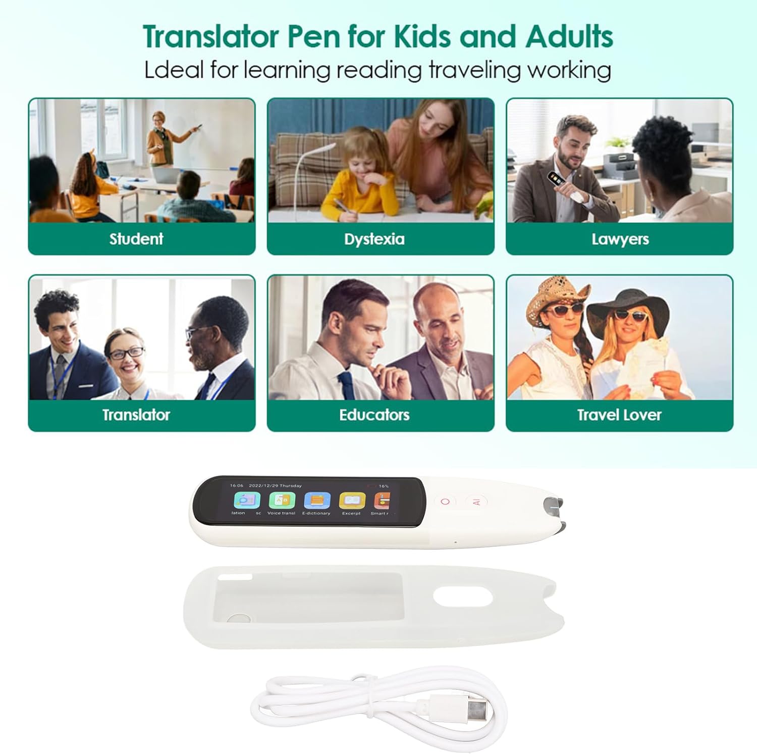 Multi Language: Translator pen has up to 134 kinds of voice real time translation, multi national aents can be understood and translated aurately, and it is easy to travel to more than 200 countries and regions around the world; One click collection of new words, targeted listening, speaking and reading anytime, anywhere.