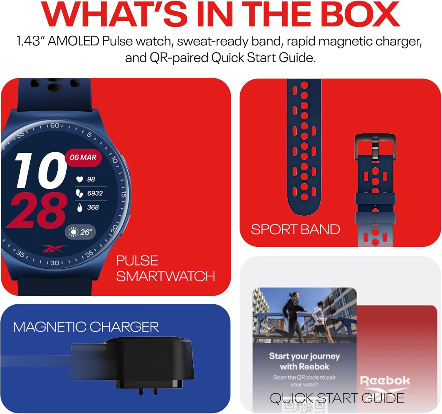 Reebok Pulse Smartwatch – GPS Android Smart Watch & iPhone Compatible Fitness Tracker with Heart Rate Monitor, Pedometer for Walking, Waterproof Watch, Smartwatch for Men & Women – Vector Blue