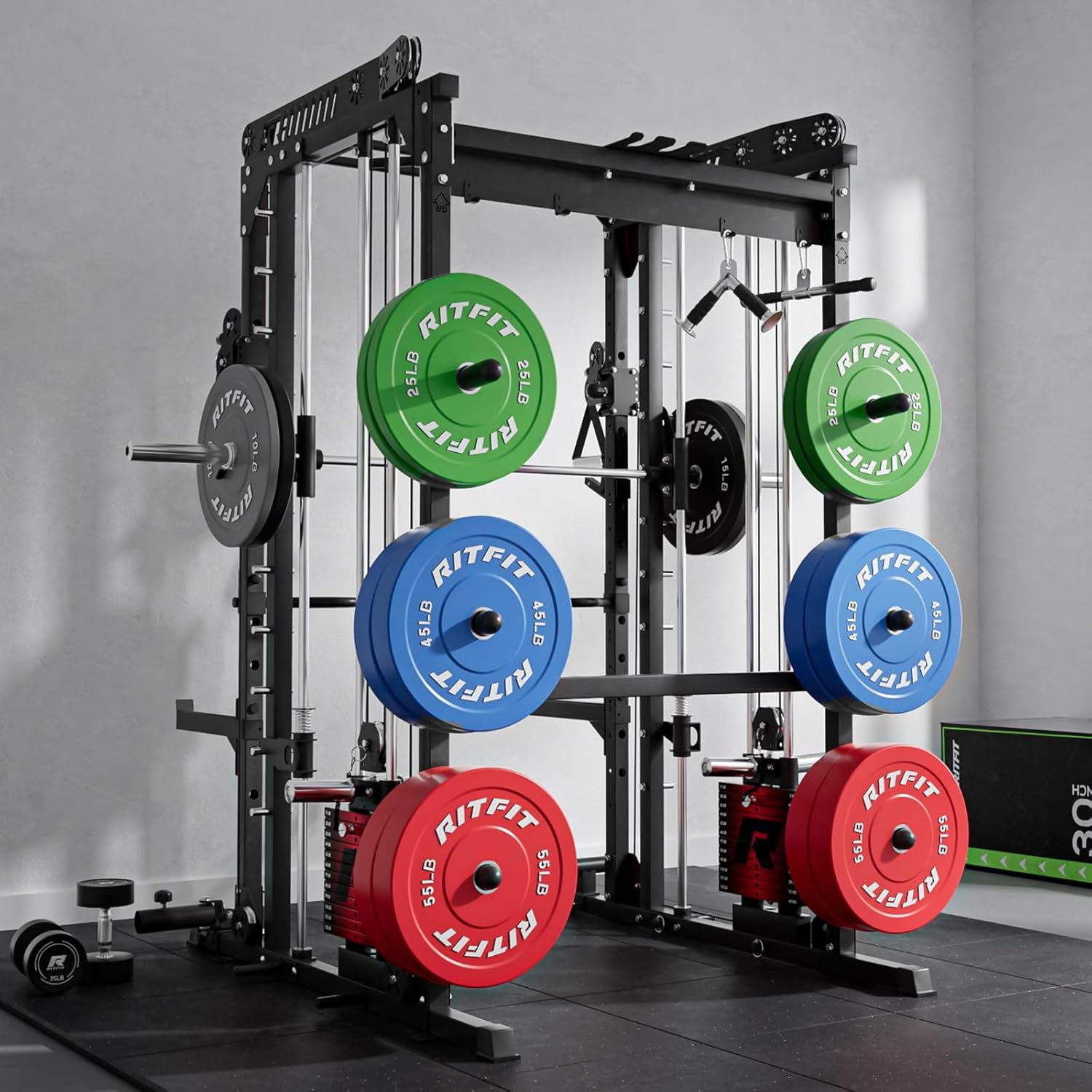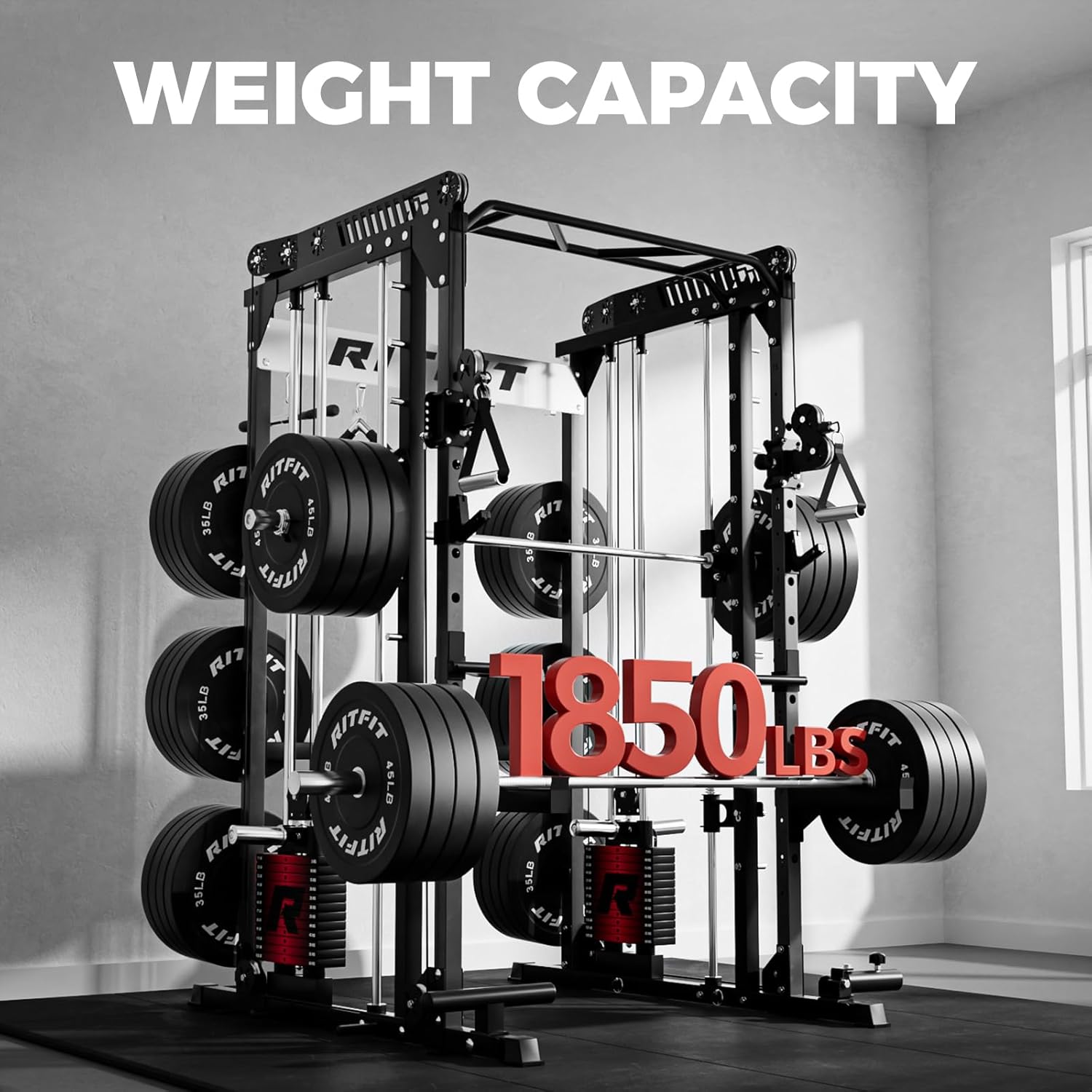 RitFit M1 Pro Smith Machine Package, All-in-One Power Cage with Weight Stack Set, Includes LAT Pulldown & Cable Crossover System for Home Gyme