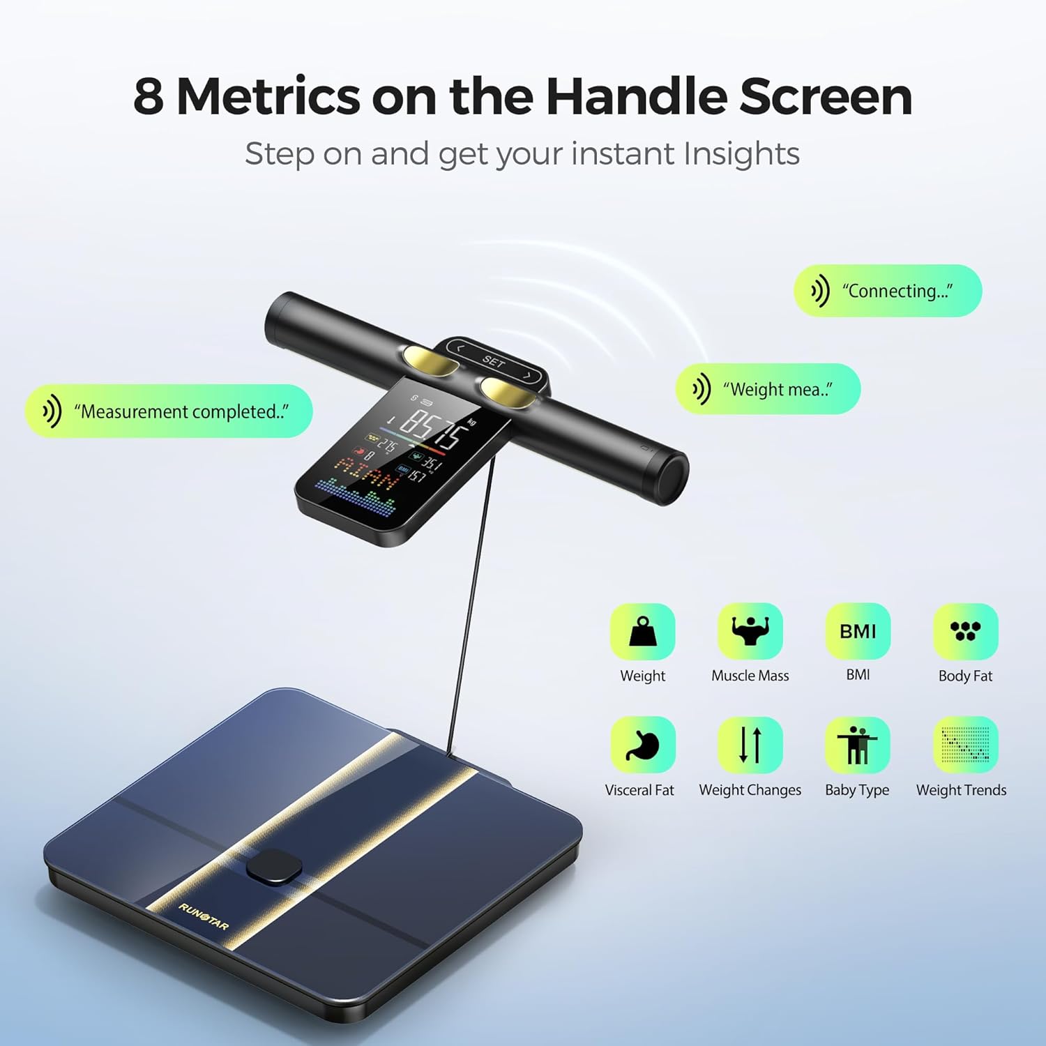 RunStar Smart Scale for Body Weight and Fat Percentage, 8 Electrodes High Precision Body Composition Scale with Set Functions Handle, Body Analyzer Scale Sync App 28 Metrics 400lbs