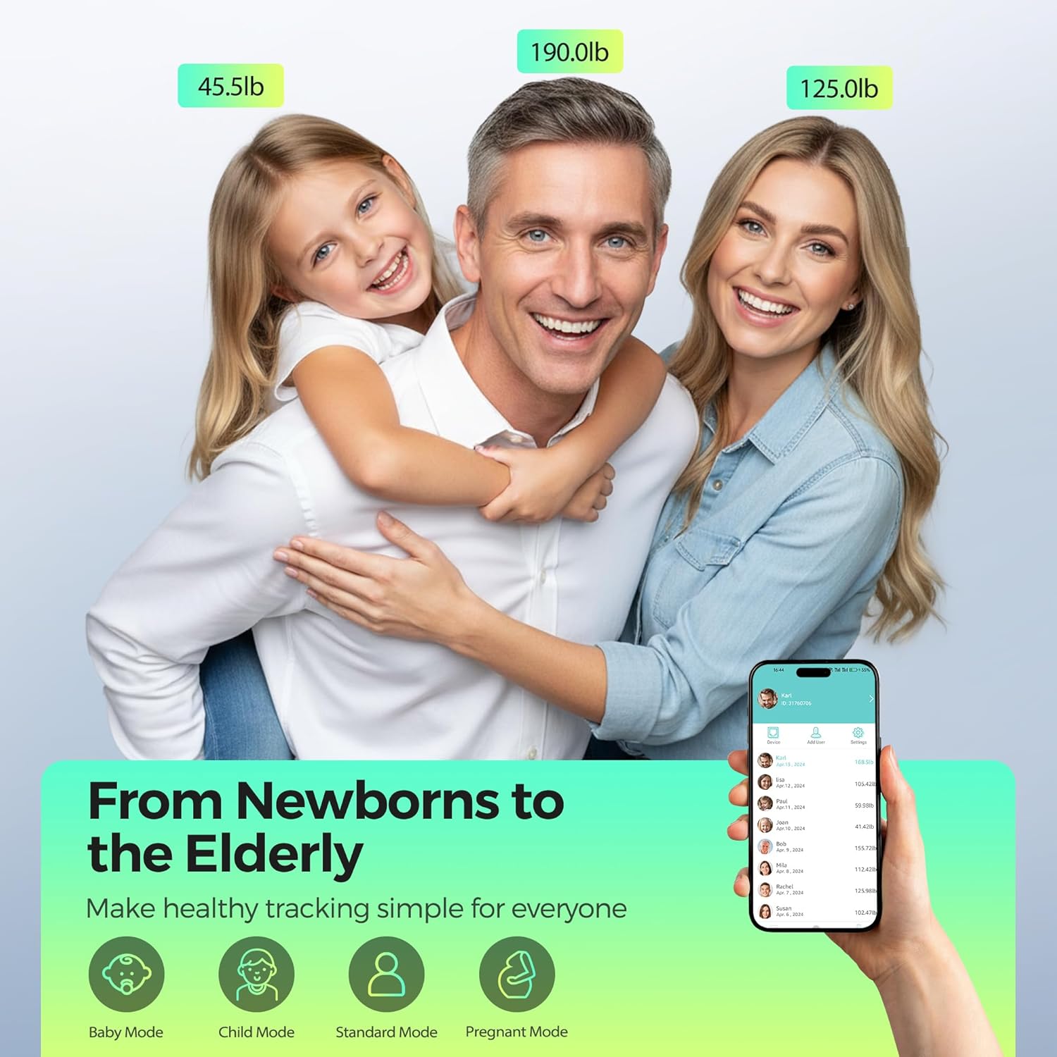 From Newborns to the Elderly: Thoughtfully designed modes- Baby Mode, Toddle Mode, Child Mode, Standard Mode, and Pregnant Mode—easily switch modes on the Strfit APP and make healthy tracking simple for everyone in your family. Customize your profile and tailor the scale to you