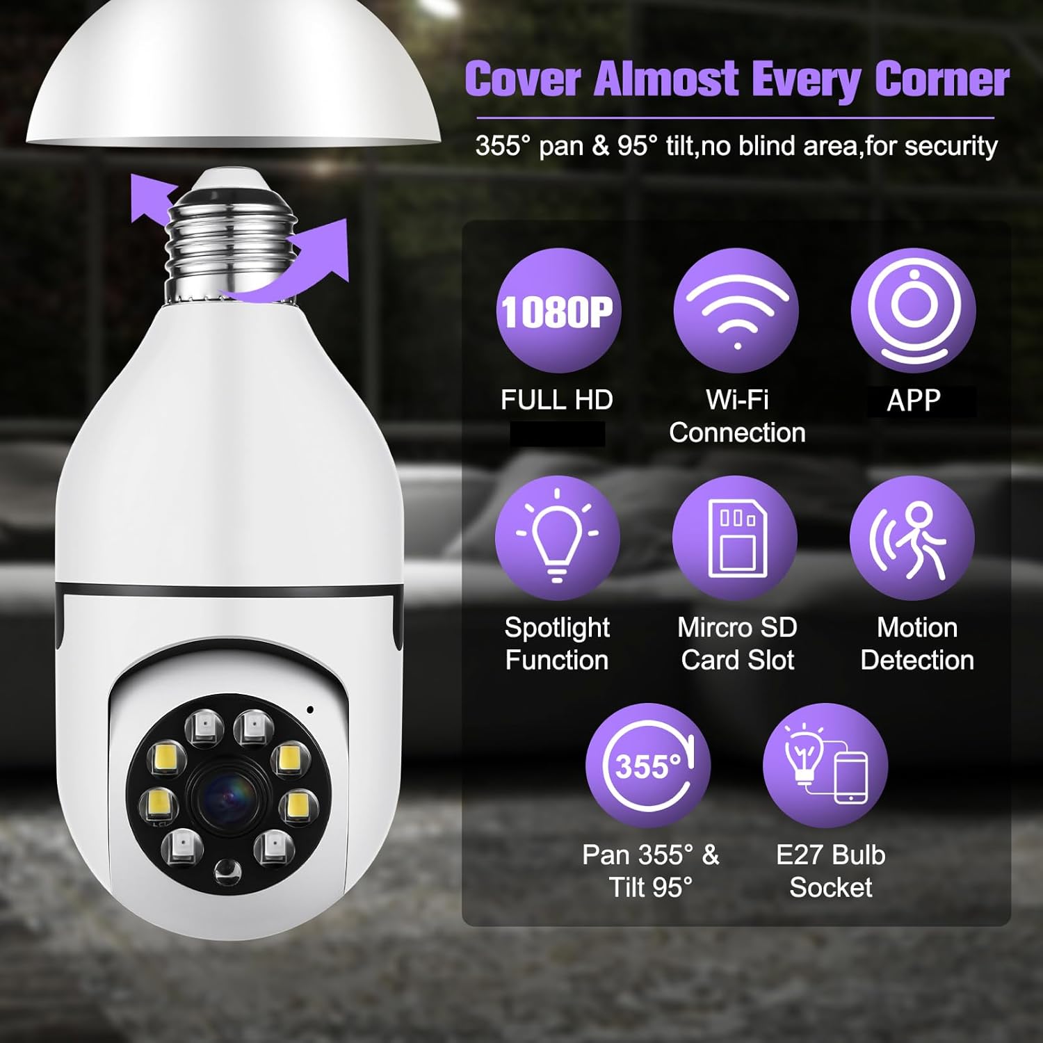 Two-Way Audio & High Quality Service: This security camera indoor wireless Built-in microphone and speaker, the bulb security camera can have a conversation between you and your visitor, If you have any question, please contact us. We provide lifetime technical support and services.