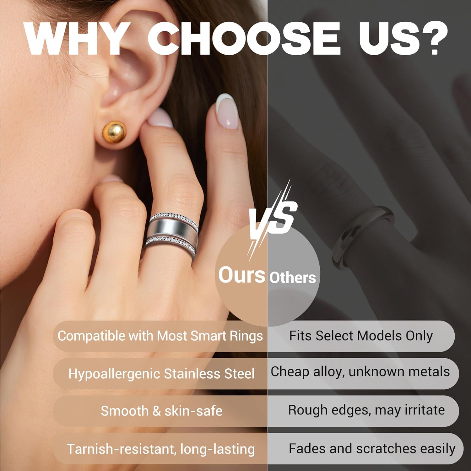 【Versatile & Compatible】Designed for adaptability, this smart ring stacking ring pairs effortlessly with a wide range of smart rings. Crafted from skin-friendly stainless steel, it’s comfortable for all-day wear and enhances your smart ring accessories collection