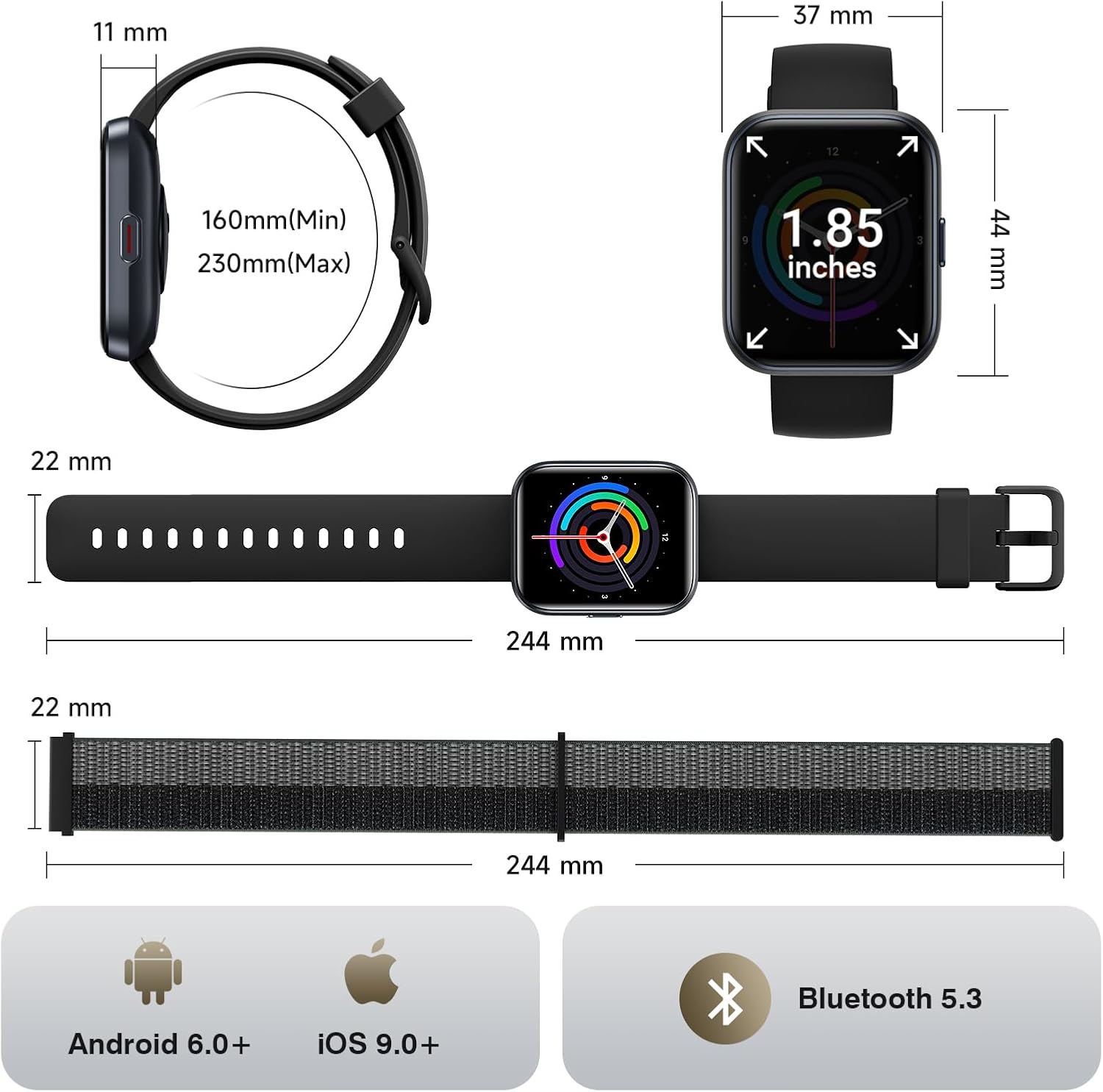 Smart Watches for Women Men, 1.85″ Screen Smartwatch Compatible iPhone Android Phone Answer/Make Call, 24/7 SpO2 Sleep Heart Rate Monitor,3ATM Waterproof, Fitness Traker 120+Sport ( 2 Bands Included)