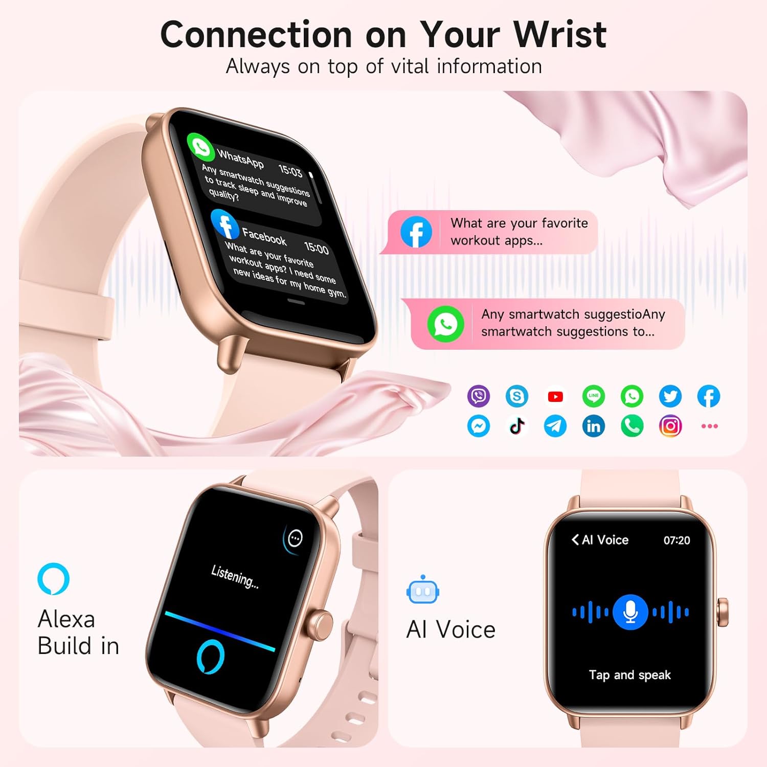 📞 【Stay Connected with Built-in Alexa】 When you’re busy, take or reject calls directly from your wrist so you never miss an important conversation. Stay updated with real-time notifications from Facebook, Instagram, WhatsApp, and other apps delivered right to you. With the built-in Alexa voice assistant, you can set alarms, check the weather, or control your music hands-free using just your voice. (Please note: The watch CANNOT send or reply to messages)