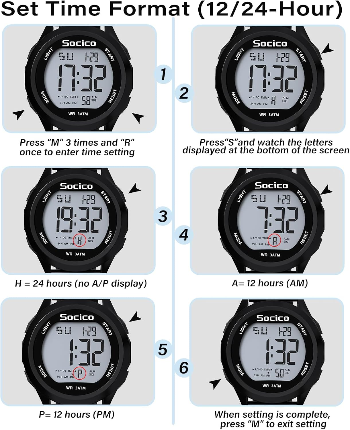mens digital watch mens digital watch Set Time Format (12/24-Hour)