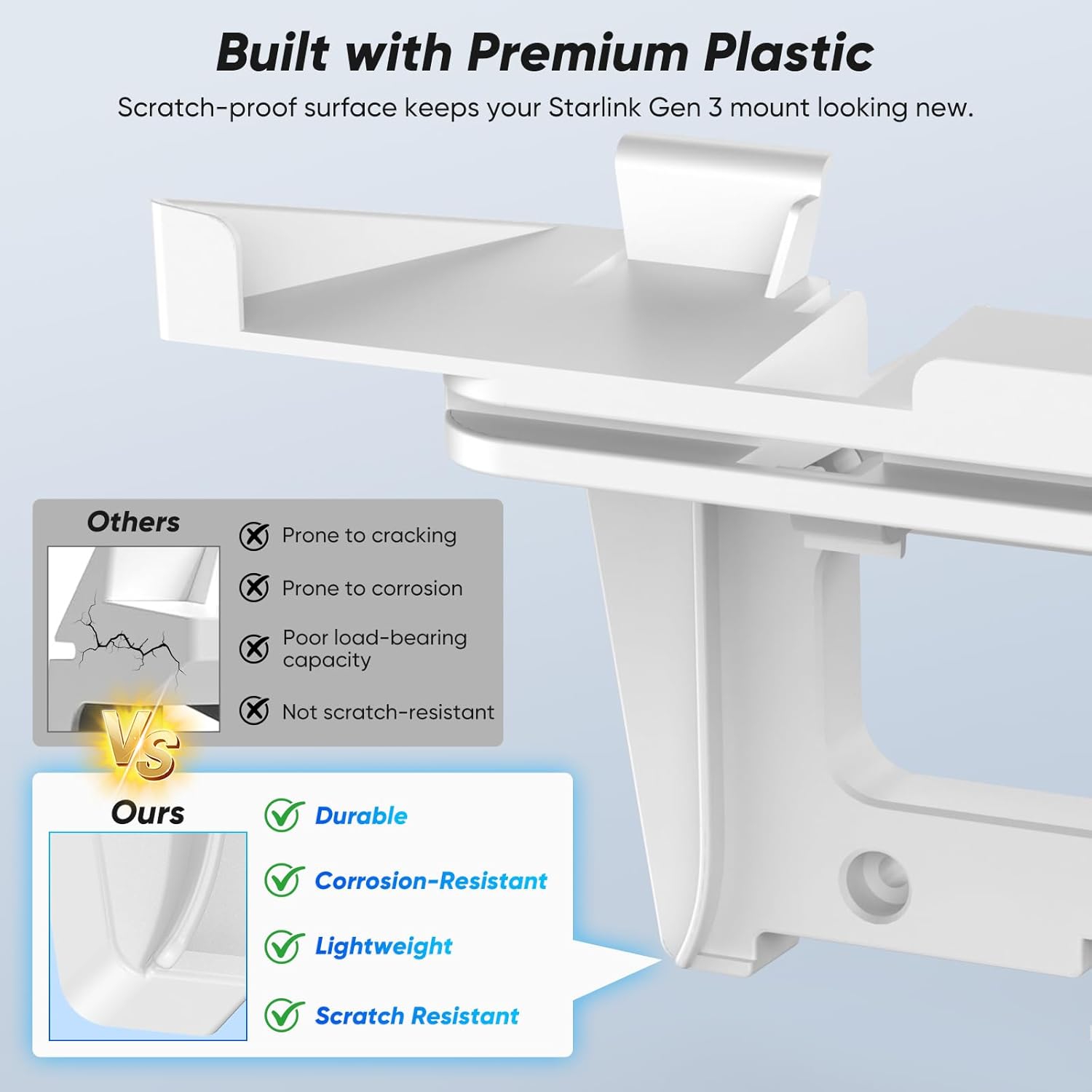 【Durability & Quality】 Built with high-quality ABS plastic, the Starlink Gen 3 mount is impact-resistant, scratch-proof, and designed to provide long-lasting durability for your Starlink accessories. Its sturdy construction ensures your Starlink router and power supply stay safe and secure.