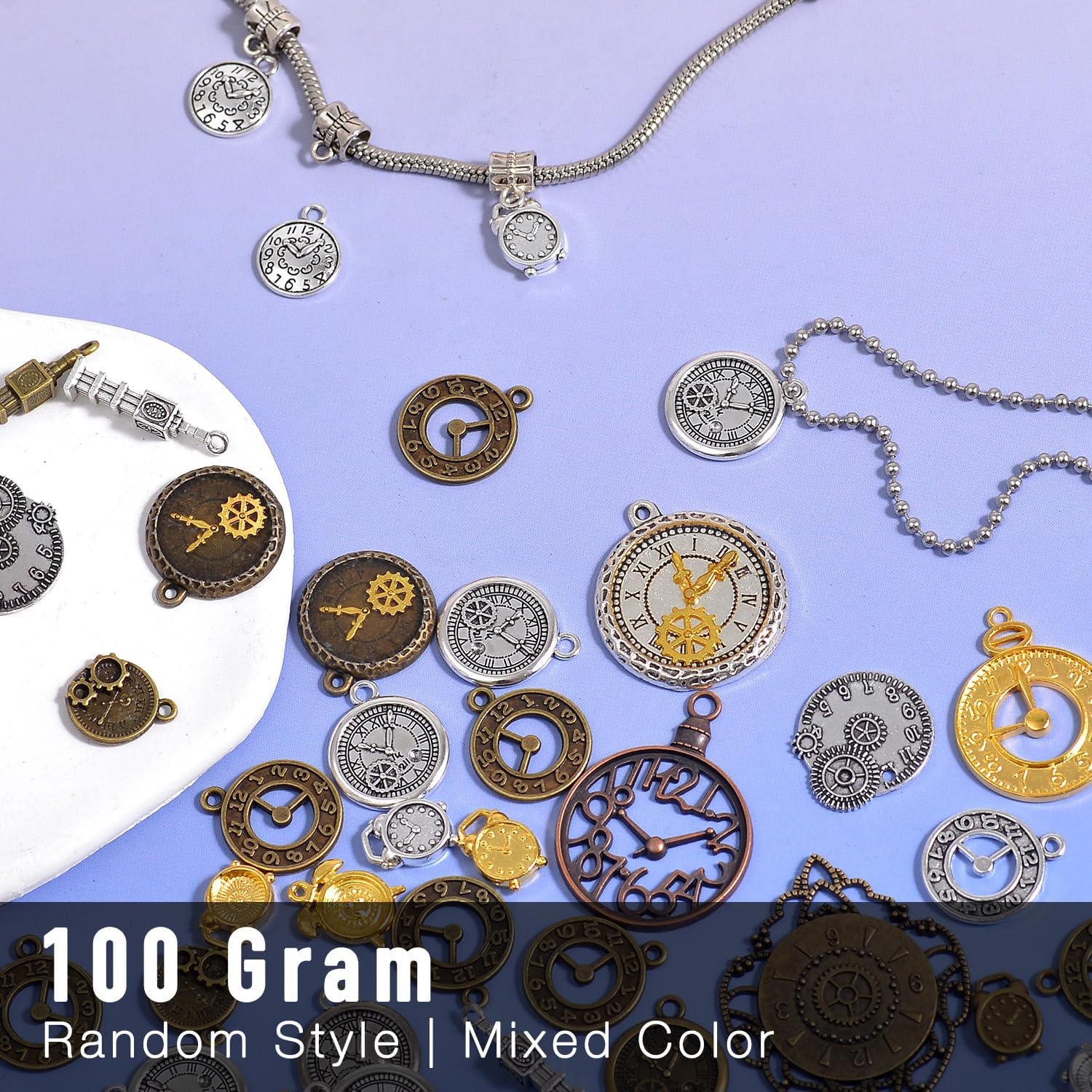 stino 100 G Vintage Antique Metal Charms for Jewelry Making, Bulk Silver & Gold Plated, for Bracelet, Necklace, Earrings DIY Crafts
