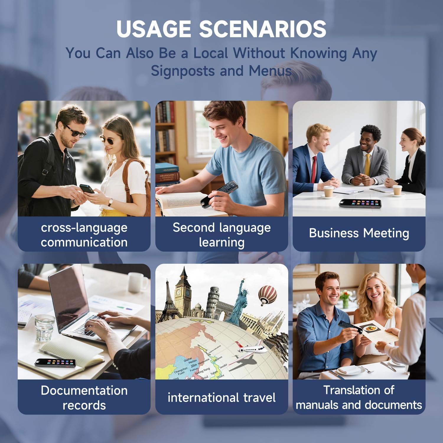 【TWO-WAY VOICE TRANSLATION PEN】Two-way language translation function, your voice will be immediately translated and played through the built-in speaker and displayed on the translator pen, such as from Spanish to English or from English to Spanish, our language translator device enables truly smooth real-time communication. Supports 142 languages online voice translation and 9 languages offline voice translation.