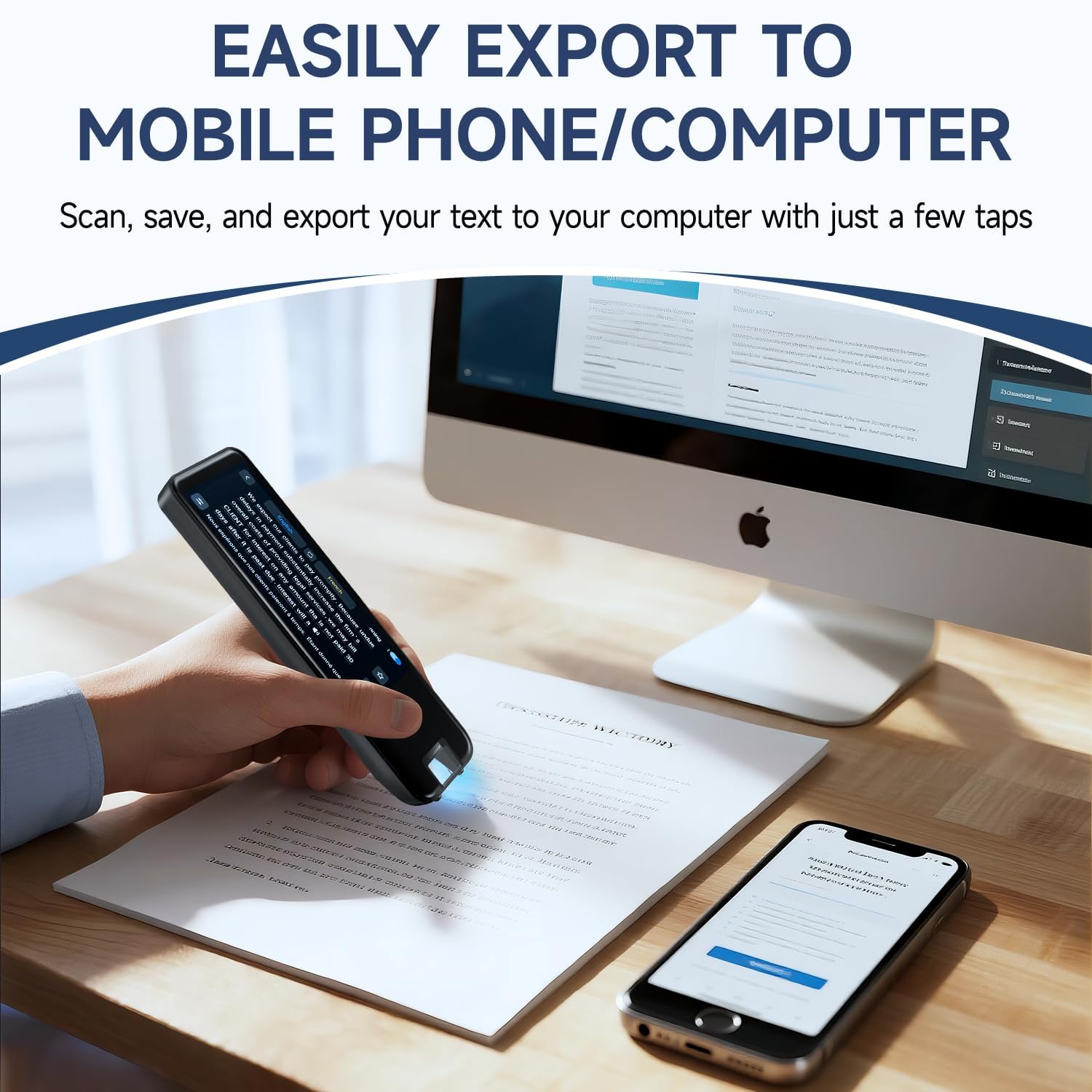 【TEXT EXCERPT AND EXPORT】The scan pen can scan text and convert it into electronic documents. Scanning the QR code on the machine can also be transferred to your mobile phone in real time. You can use a USB cable to connect the computer to transfer the scanned text without downloading any apps. Our ai pen supports export in 51 languages, which is perfect for digitizing documents, creating notes or saving important information for future use.