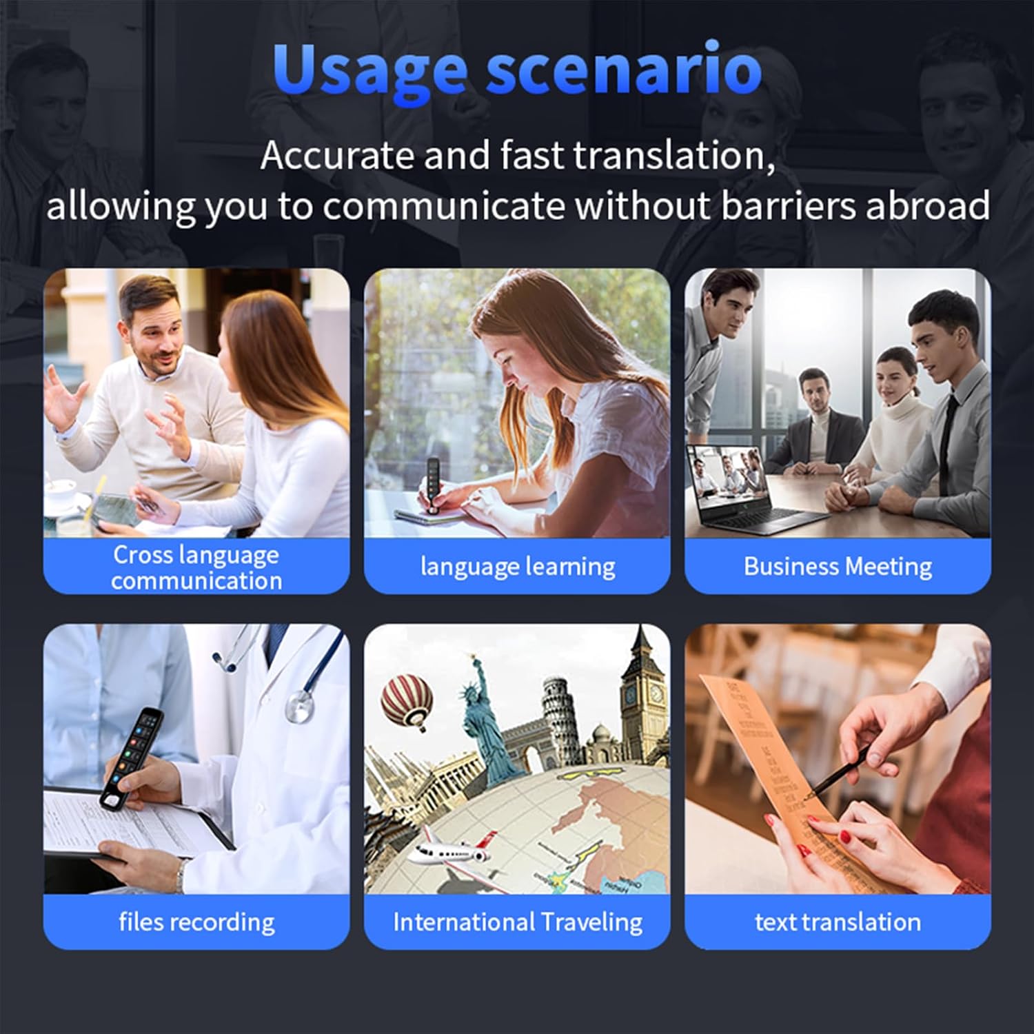 (1) Portable Design:Compact and lightweight, easy to carry, satisfying your translation needs anytime, anywhere.