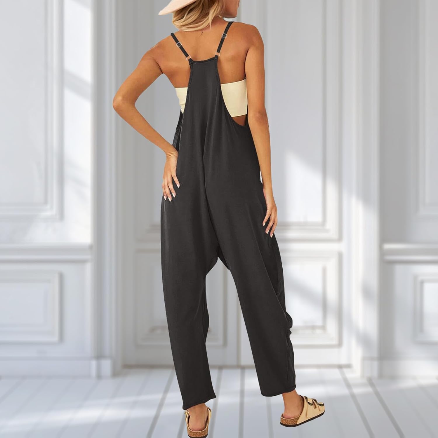UNIANKIYA One Piece Jumpsuits for Women Casual Overalls Sleeveless Strap Rompers Travel Vacation Outfits Fall Fashion Clothes