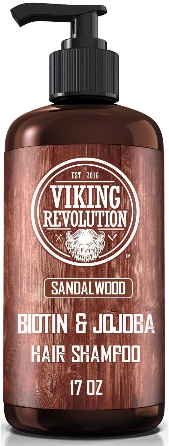 Viking Revolution Sandalwood Shampoo and Conditioner Set with Biotin and Jojoba Oil – Natural Hair Shampoo and Hair Conditioner for Men with Vitamin B5 (17 Oz)