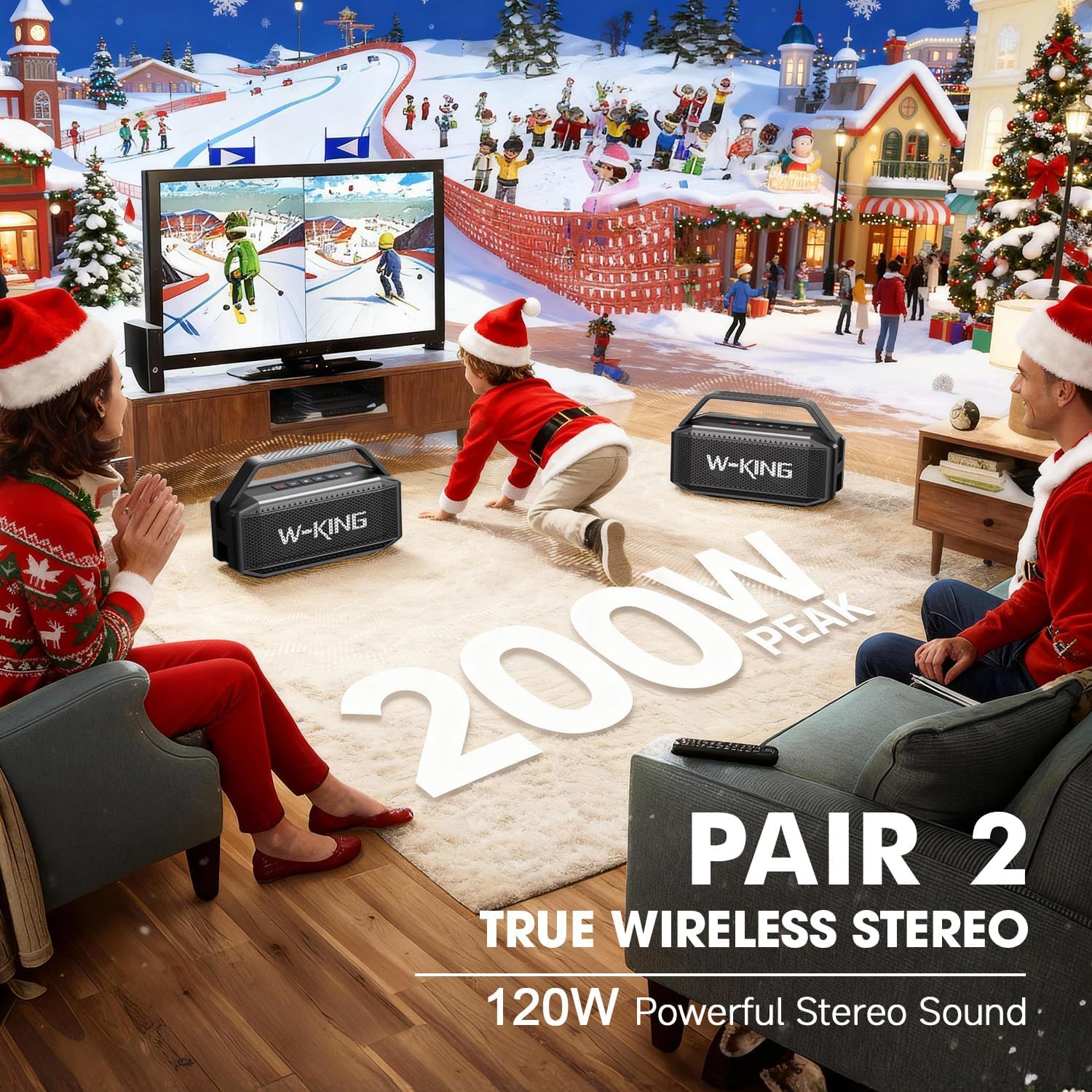 200W PEAK POWERFUL BEAST STEREO & BLUETOOTH 5.0: Pair 2 D9-1 bluetooth speaker portable wireless to instantly get 120W super stereo surround sound, whether at a party, watching a movie, or outdoors, The D9-1 Loud bluetooth speaker brings you a strong sound quality shock and an unprecedented listening experience. BT 5.0 enables a stable connection up to 100ft, so you won’t miss a happy moment while playing music, impromptu conference or making a HANDS-FREE call. (D9 and D9-1 cannot be paired).