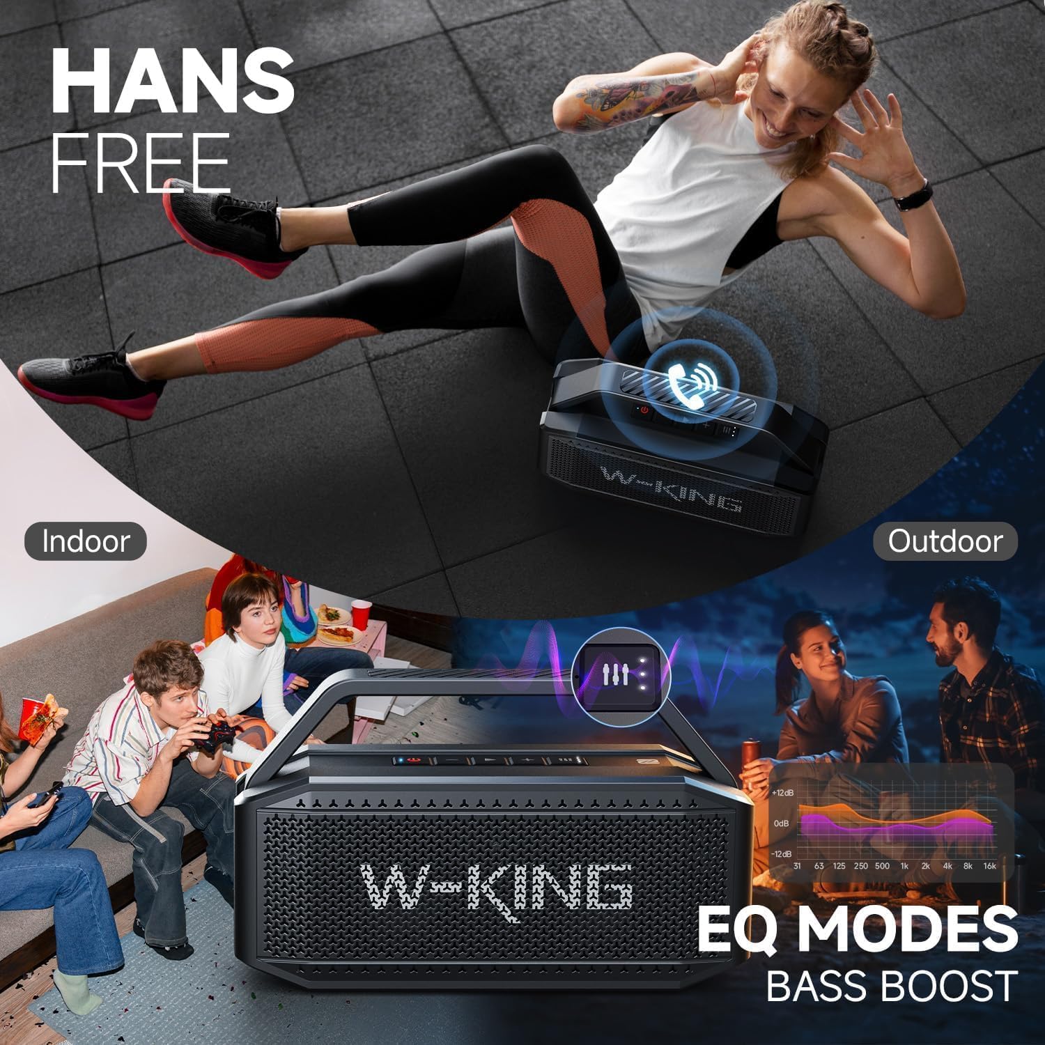 W-KING Portable Loud Bluetooth Speaker, 100W Max Waterproof Outdoor Speakers Bluetooth Wireless, IPX6 Party Big Large Speaker Boombox 2 Subwoofer-60W Exlarge Deep Bass Radiator/2 Pairing/40H/TF/AUX/EQ