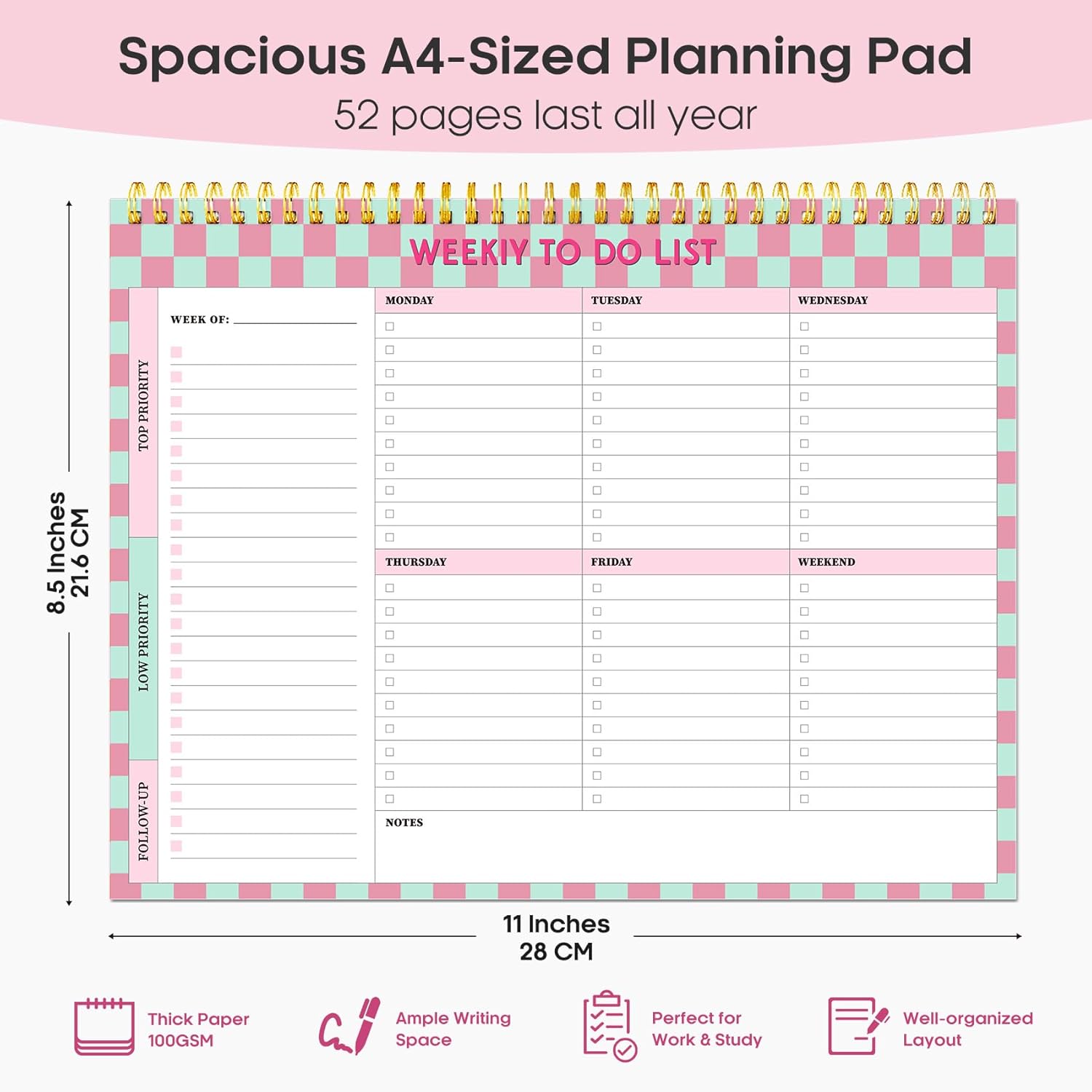 Weekly To Do List Notepad with 52 Undated Sheets(8.5″×11″)- Weekly Desk Planner for Women & Man, Work and Home – Bubble Checkered
