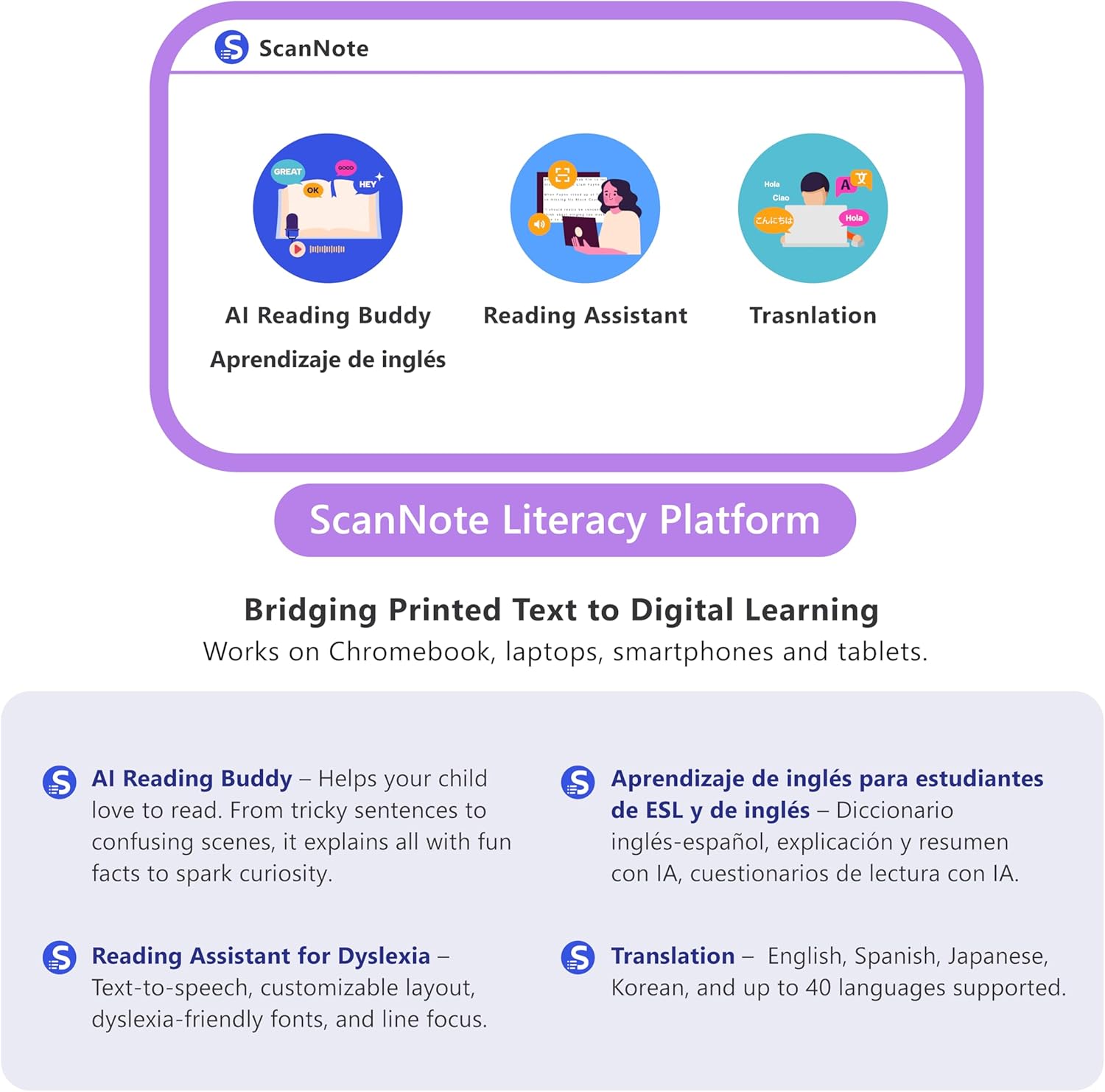 AI Reading Buddy for Kids – The first AI-powered reading companion designed to explain words, sentences, and paragraphs at your child’s pace. It’s part of the ScanNote literacy platform working on Chromebooks, laptops, tablets, and phones via browser.