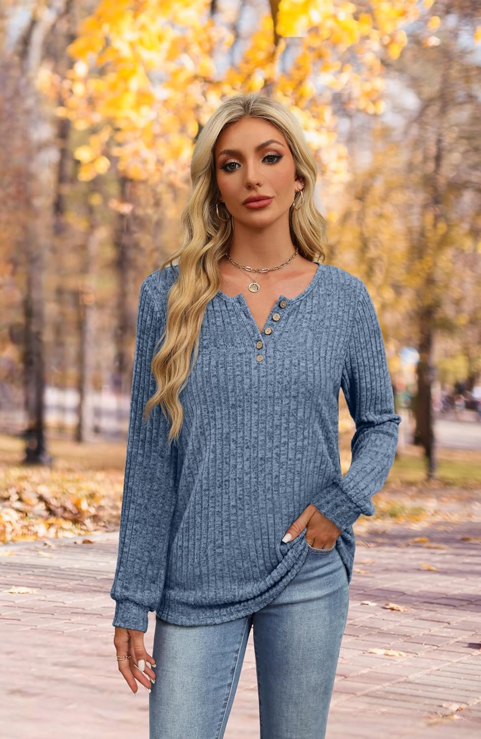 XIEERDUO Lightweight Long Sleeve Shirts for Women Crew Neck Tunic Tops Fall