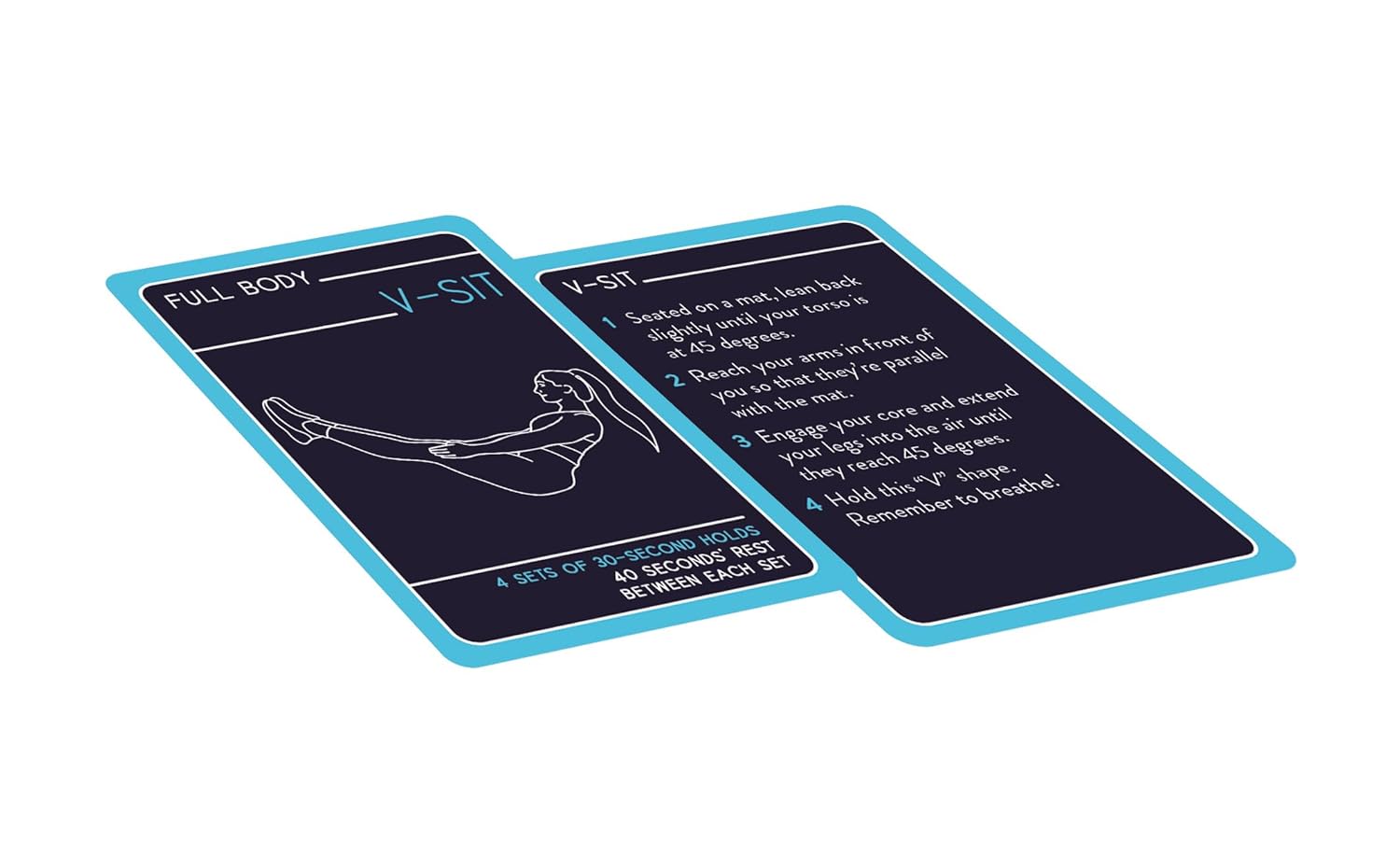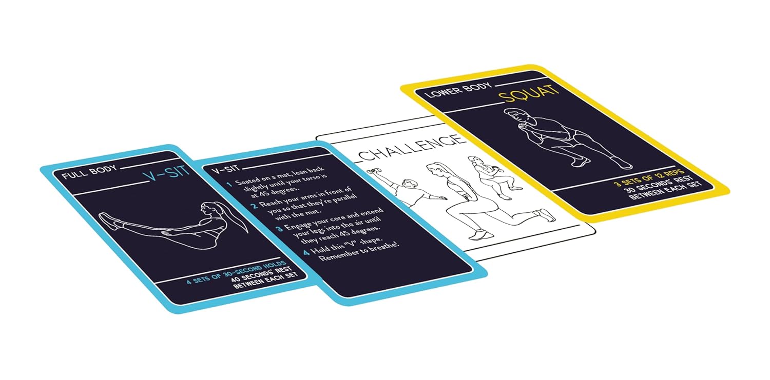 This deck guides you through 70 full body, upper body, lower body, core and cardiovascular exercises, plus a collection of fun fitness challenges that will help you create unique, effective and invigorating workout routines. You’ll also practice staple strength-building movements, use your bodyweight or makeshift free weights, and follow helpful how-to guidance in your own time.