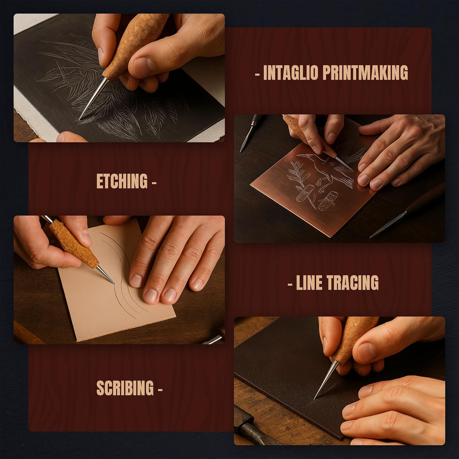 PROFESSIONAL-GRADE ETCHING PERFORMANCE: Use this tracing tool for reliable metal etching during the printmaking process; it delivers consistently sharp results on wood and metal surfaces